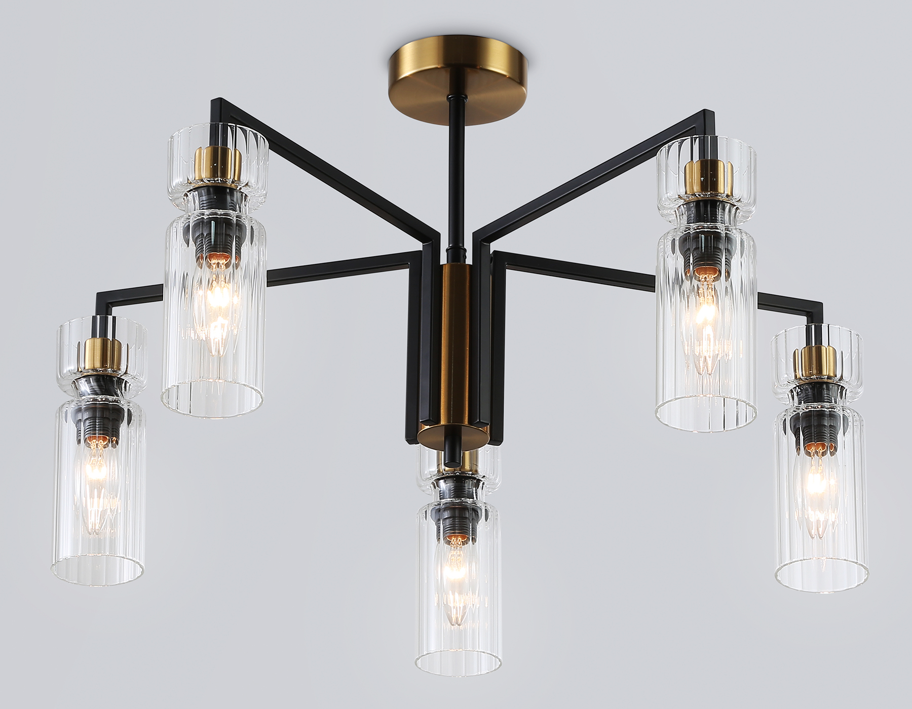 LH56113/5 BK/BS/CL черный/латунь/прозрачный E14*5 max 40W D605*350