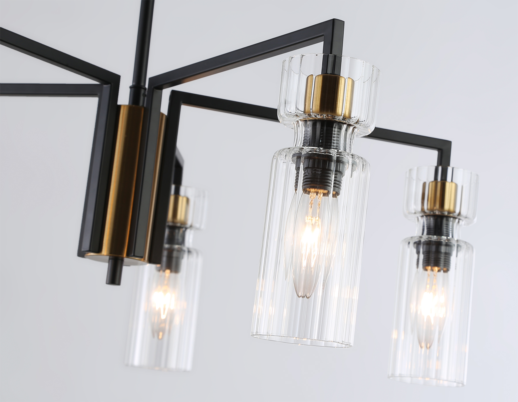 Люстра на штанге из коллекции HIGH LIGHT. Модель LH56113 представлена в стиле модерн. Люстра выполнена из стеклянных прозрачных плафонов и металлического каркаса черного цвета и цвета латунь. Для данной модели подойдут лампы с цоколем Е14. Люстра будет прекрасным дополнением в любом помещении.