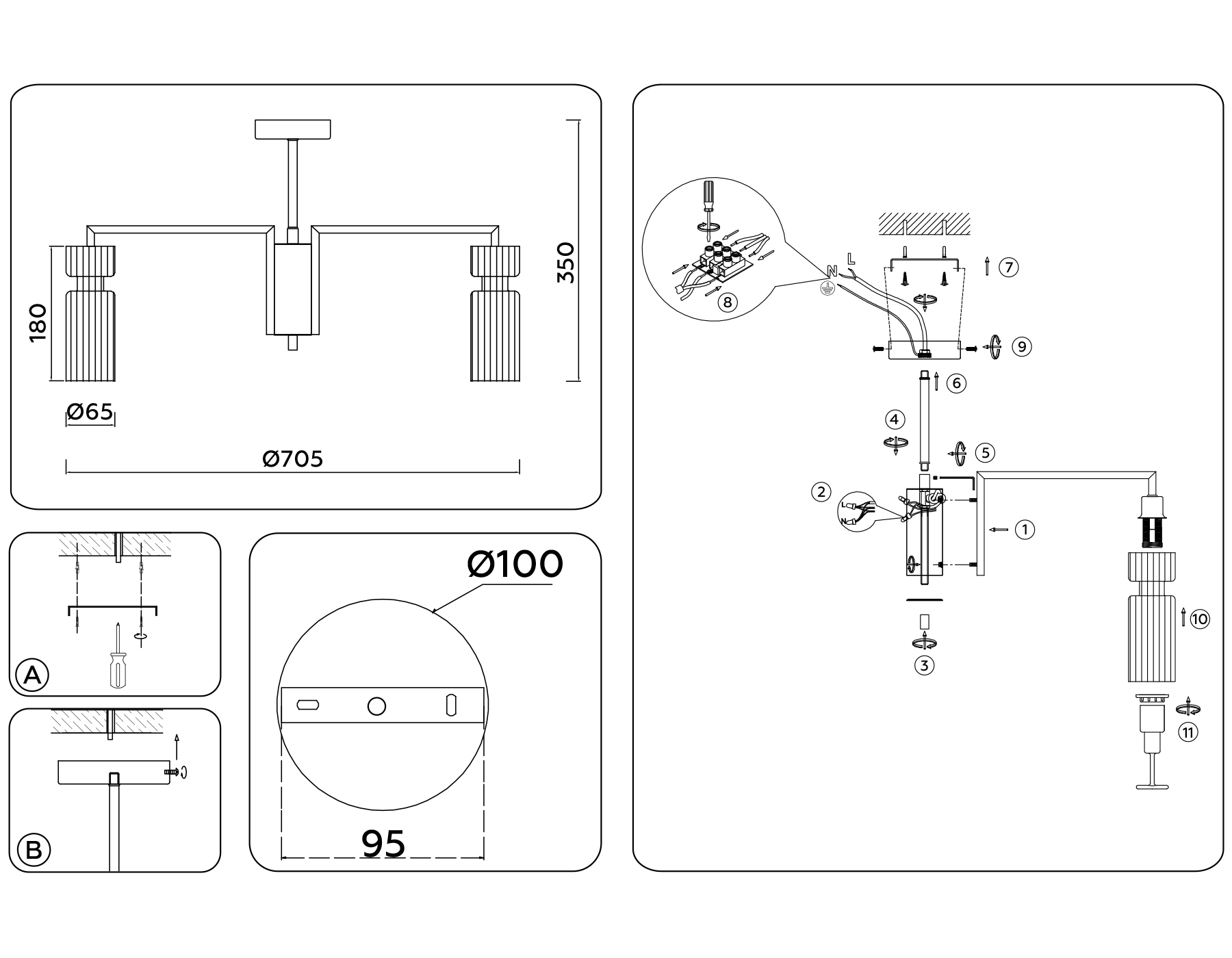 LH56115/7 BK/BS/CL черный/латунь/прозрачный E14*7 max 40W D705*350