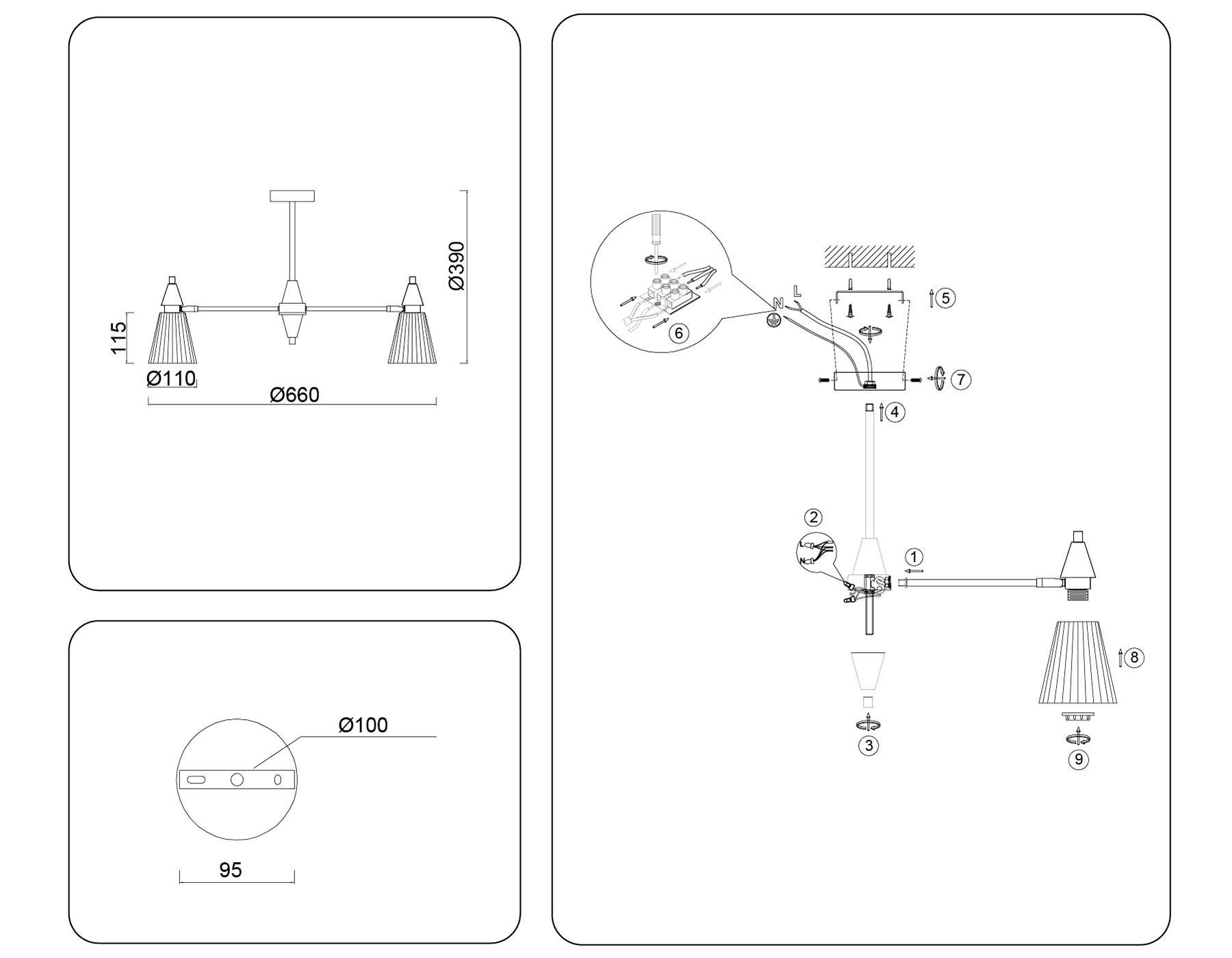 LH58114/5 BK/LW/SM черный/светлое дерево/дымчатый E14*5 max 40W D660*390