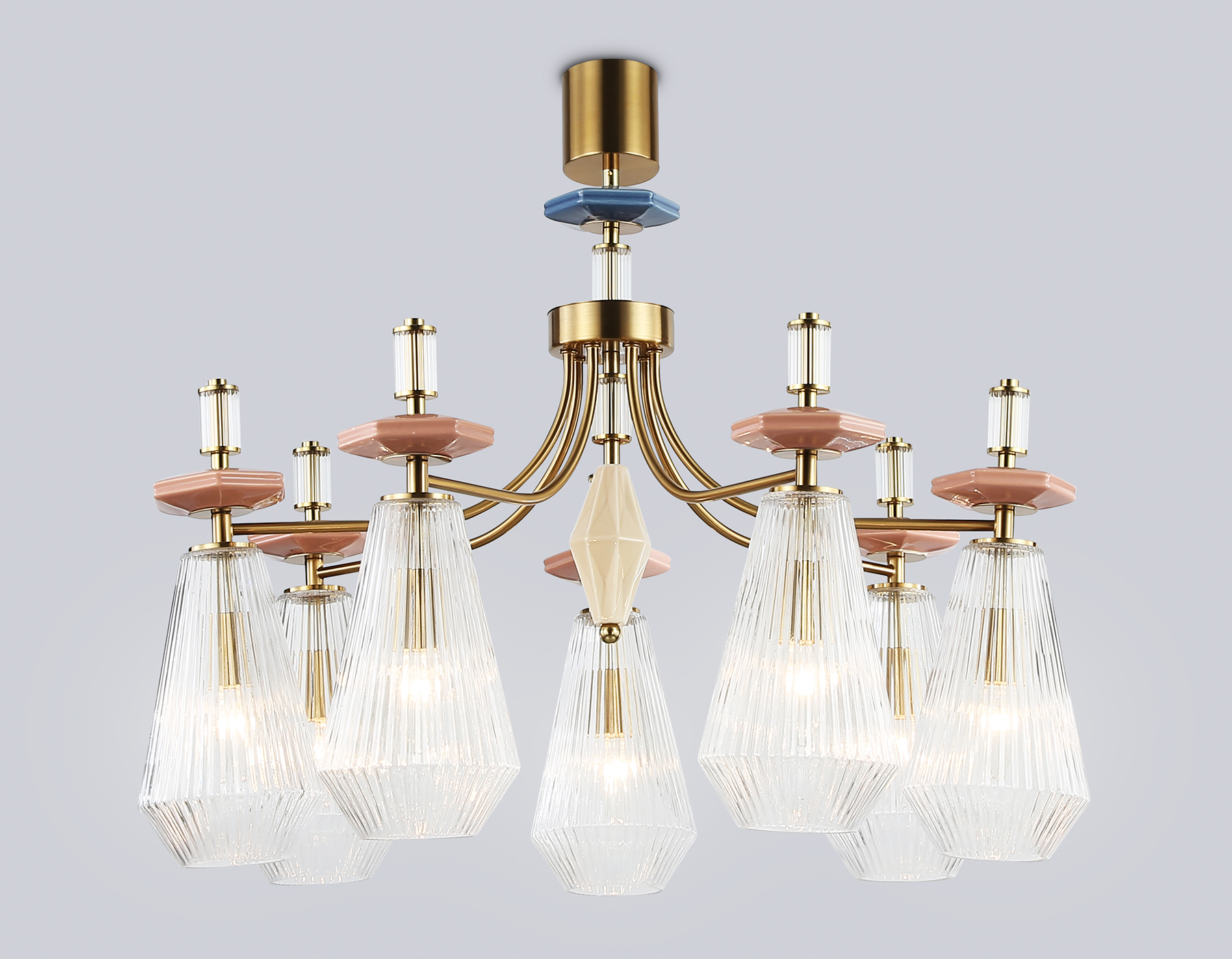 Люстра на штанге с керамикой из коллекции HIGH LIGHT. Модель LH53184 представлена в стиле неоклассика. Люстра выполнена из металлического каркаса цвета латунь, стеклянных плафонов и декорирована элементами из керамики. Для данной модели подойдут лампы с цоколем Е14. Люстра будет прекрасным дополнением в любом помещении.
