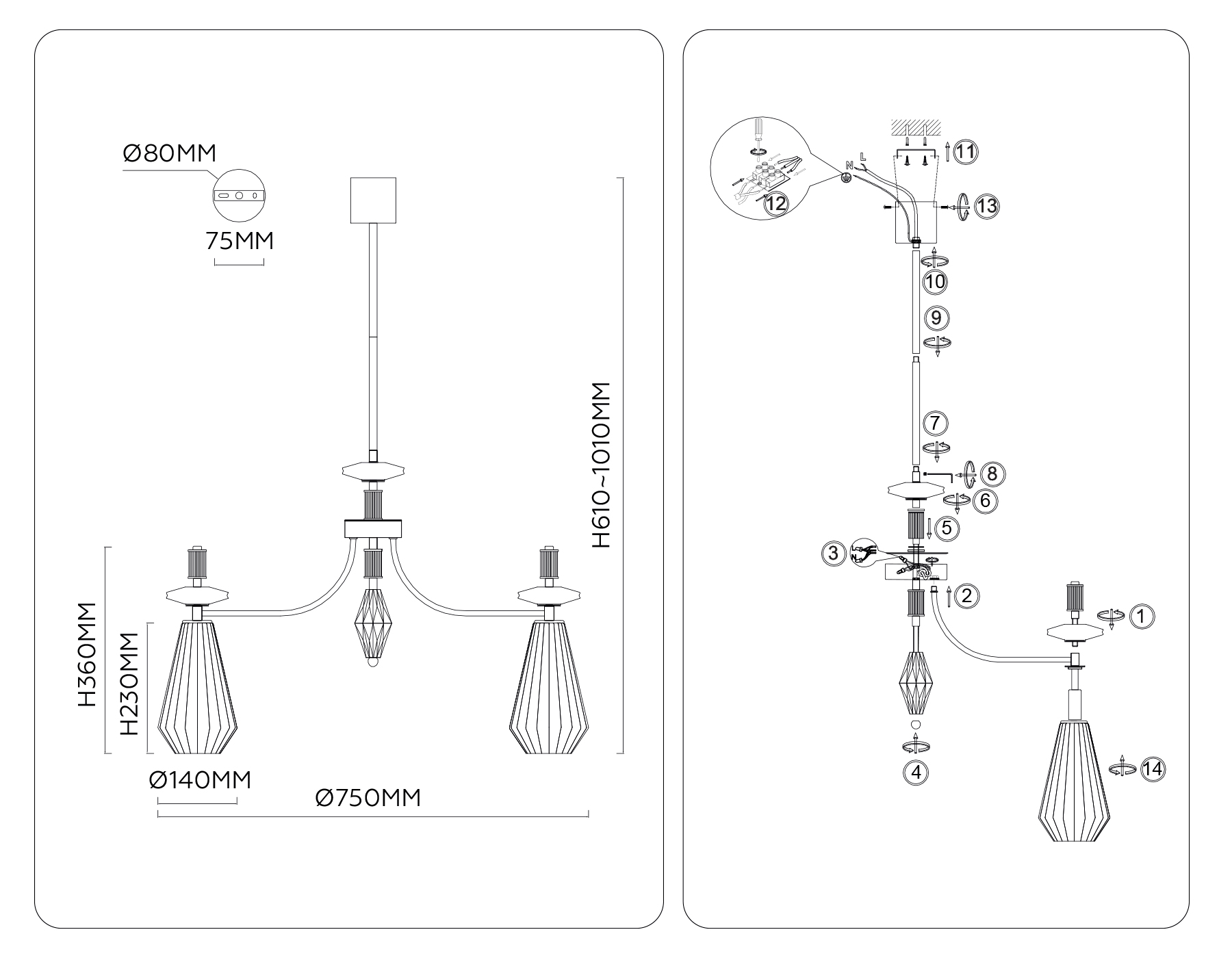 Высота люстры с тросом