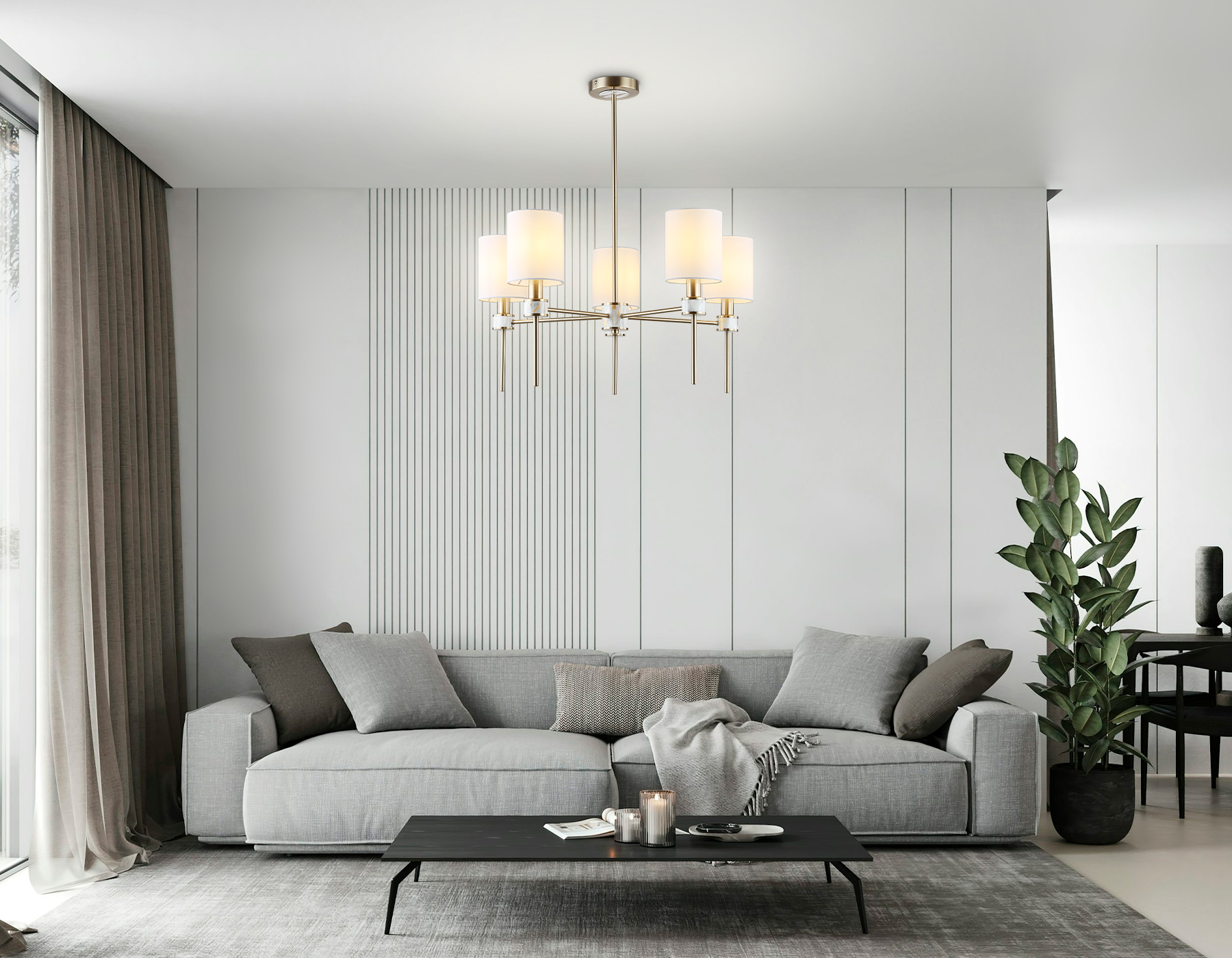 LH72371/5 DBS/WH темная латунь/белый E14/5 max 40W D680*720