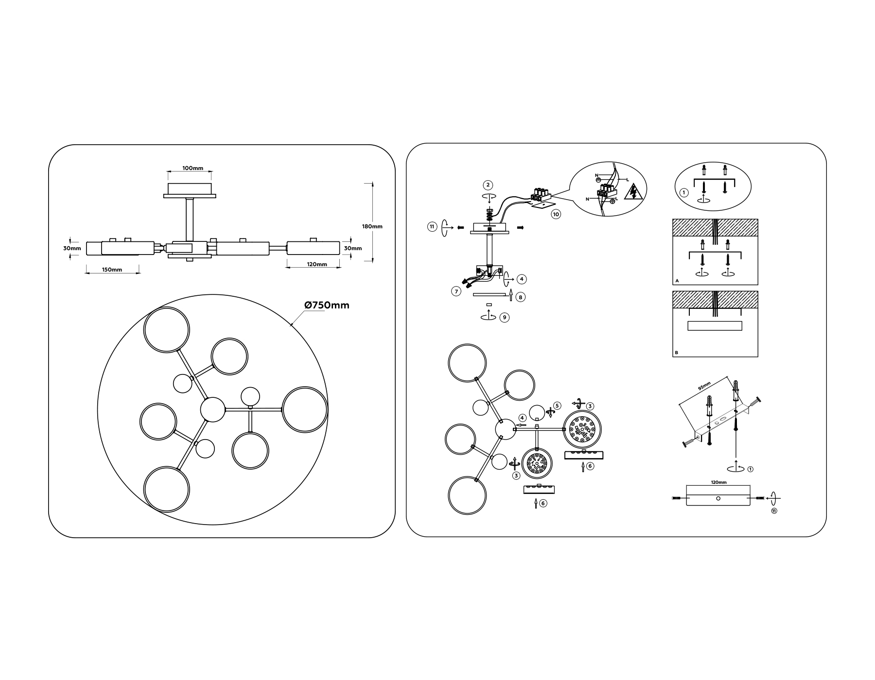FL4863/6 BK/WD черный/дерево 90W 3000-6000K D750*180 (без ПДУ)