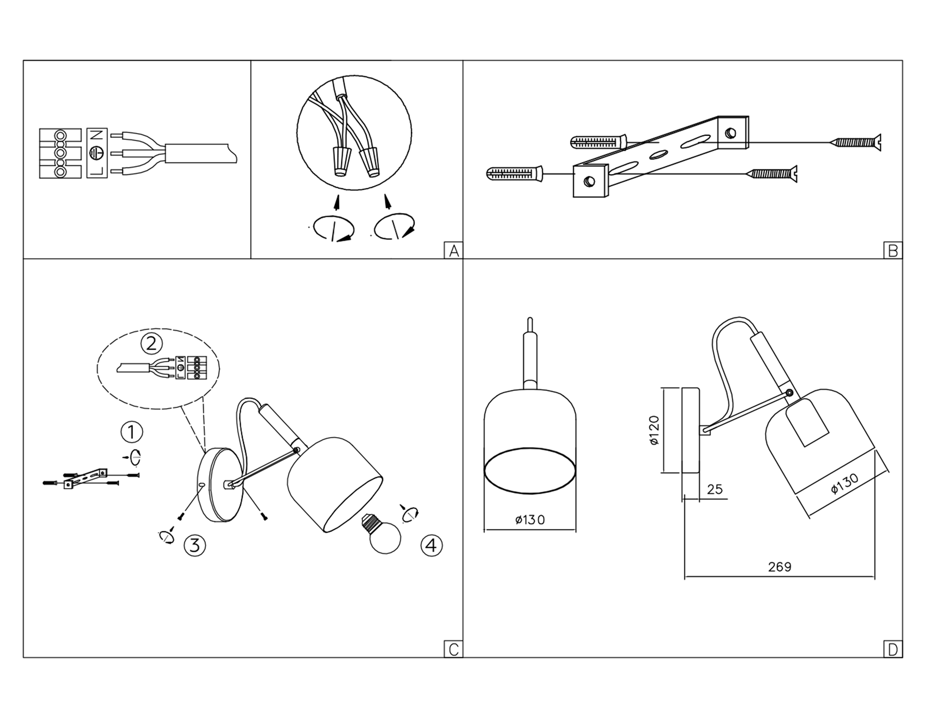 TR97102 GD/BK золото/черный E27 max 40W D130*223*273