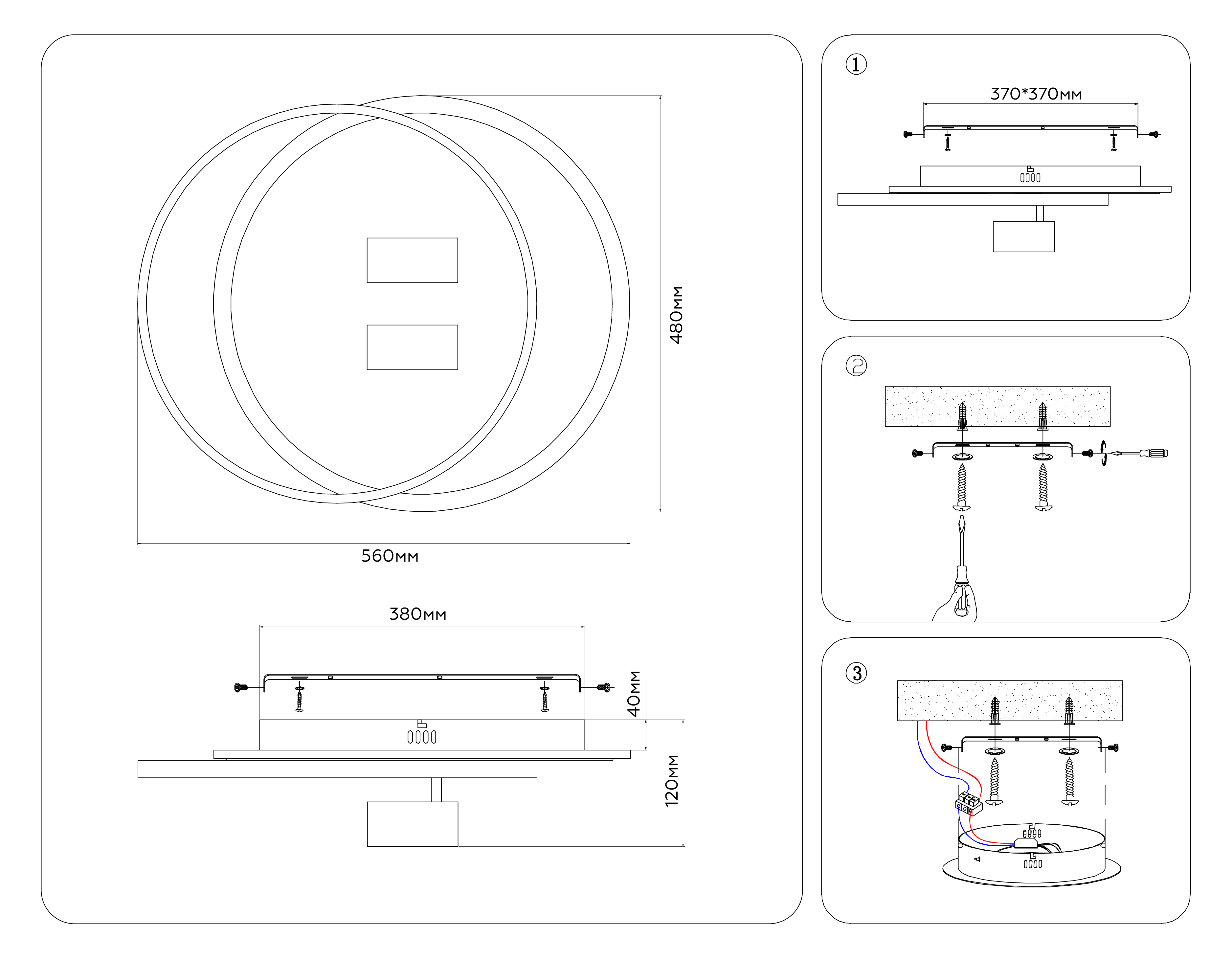 FL51392/1+2 WH/BK белый/черный 3000K-6400K 65W 560*480*120 (ПДУ РАДИО 2.4G)