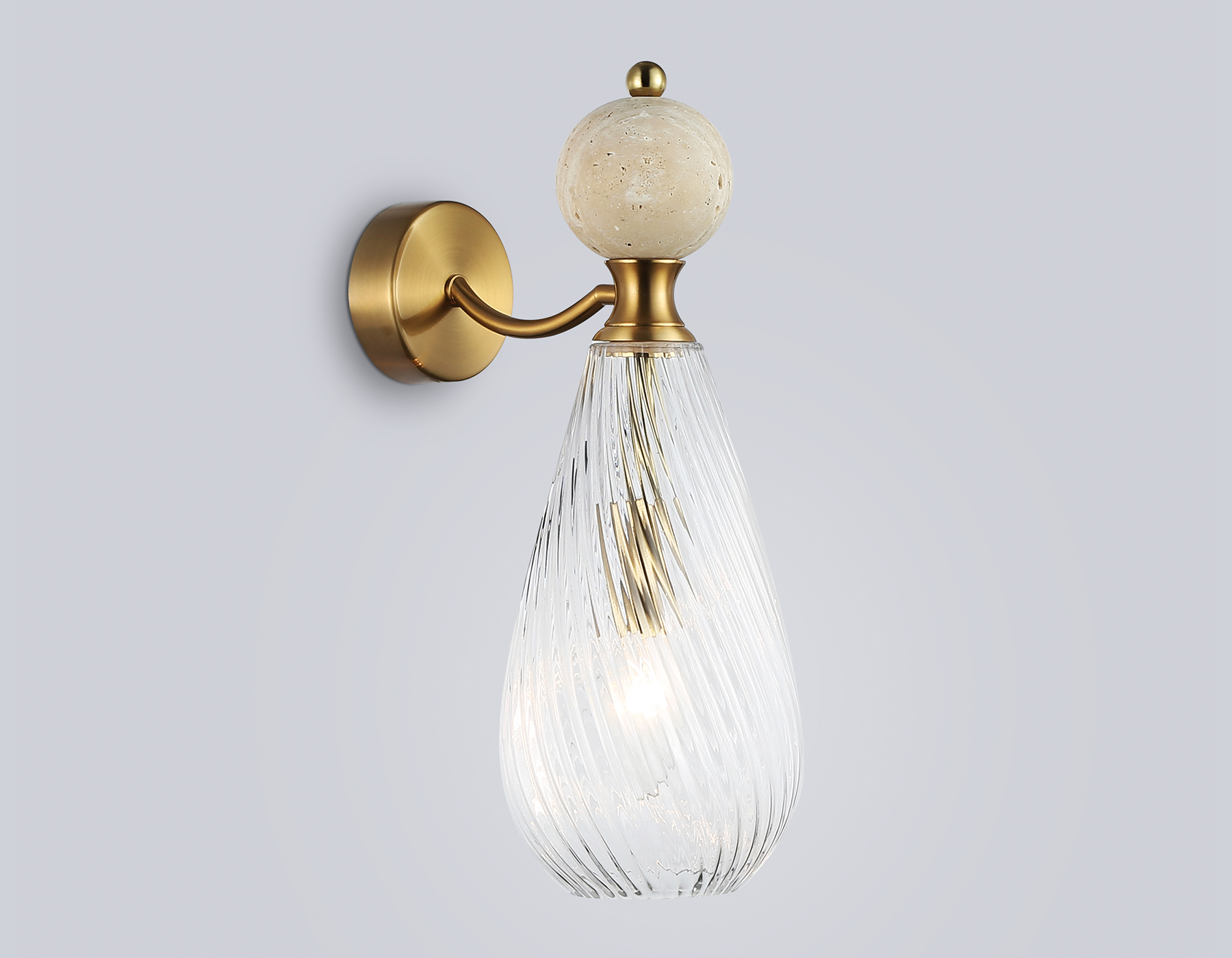 Настенный светильник с травертином из коллекции HIGH LIGHT. Модель LH53288 представлена в стиле неоклассика. Светильник выполнен из металлического каркаса цвета латунь, стеклянного плафона и декорирован элементами из травертина. Для данной модели подойдет сменная лампа с цоколем Е14. Светильник будет прекрасным дополнением в любом помещении.