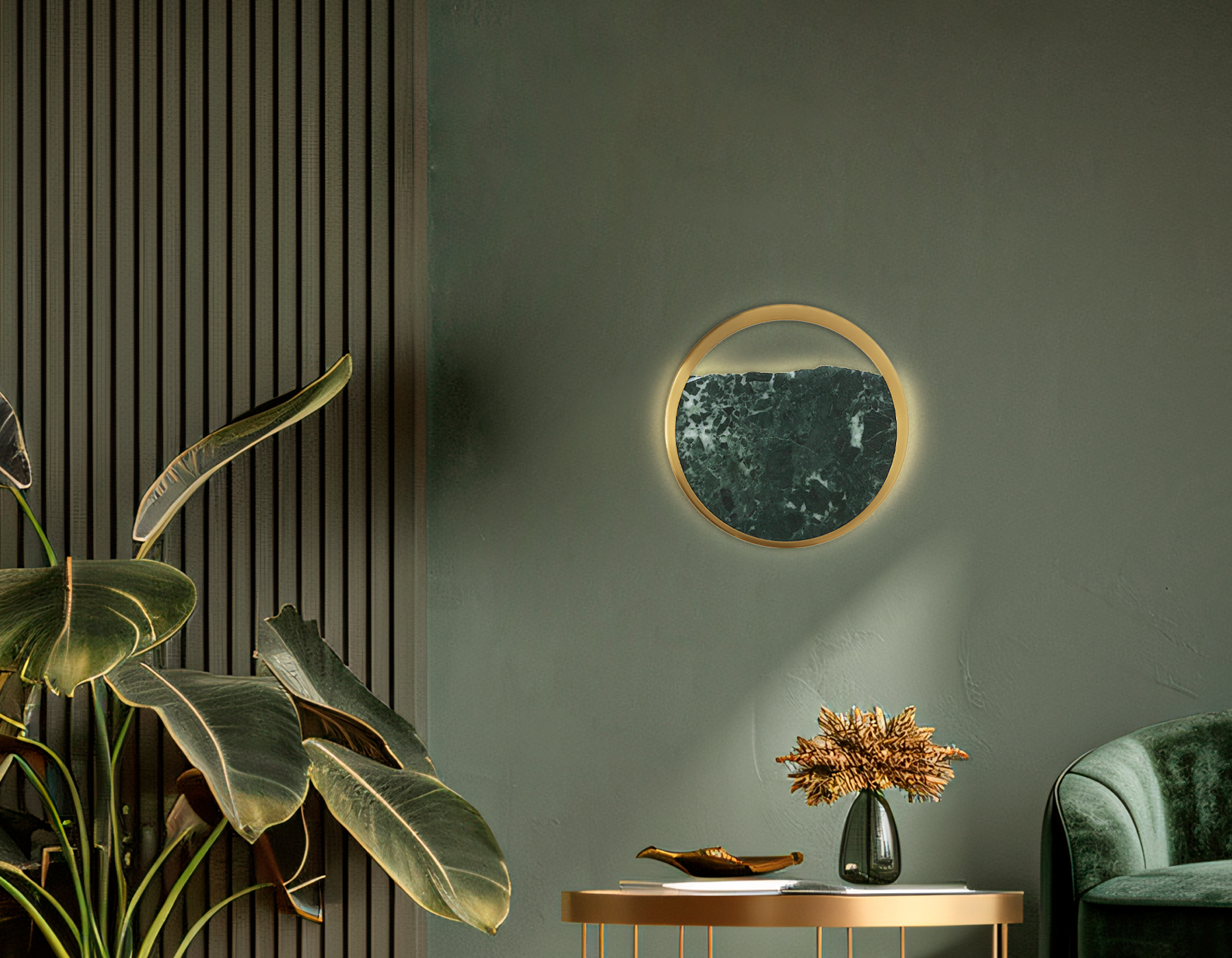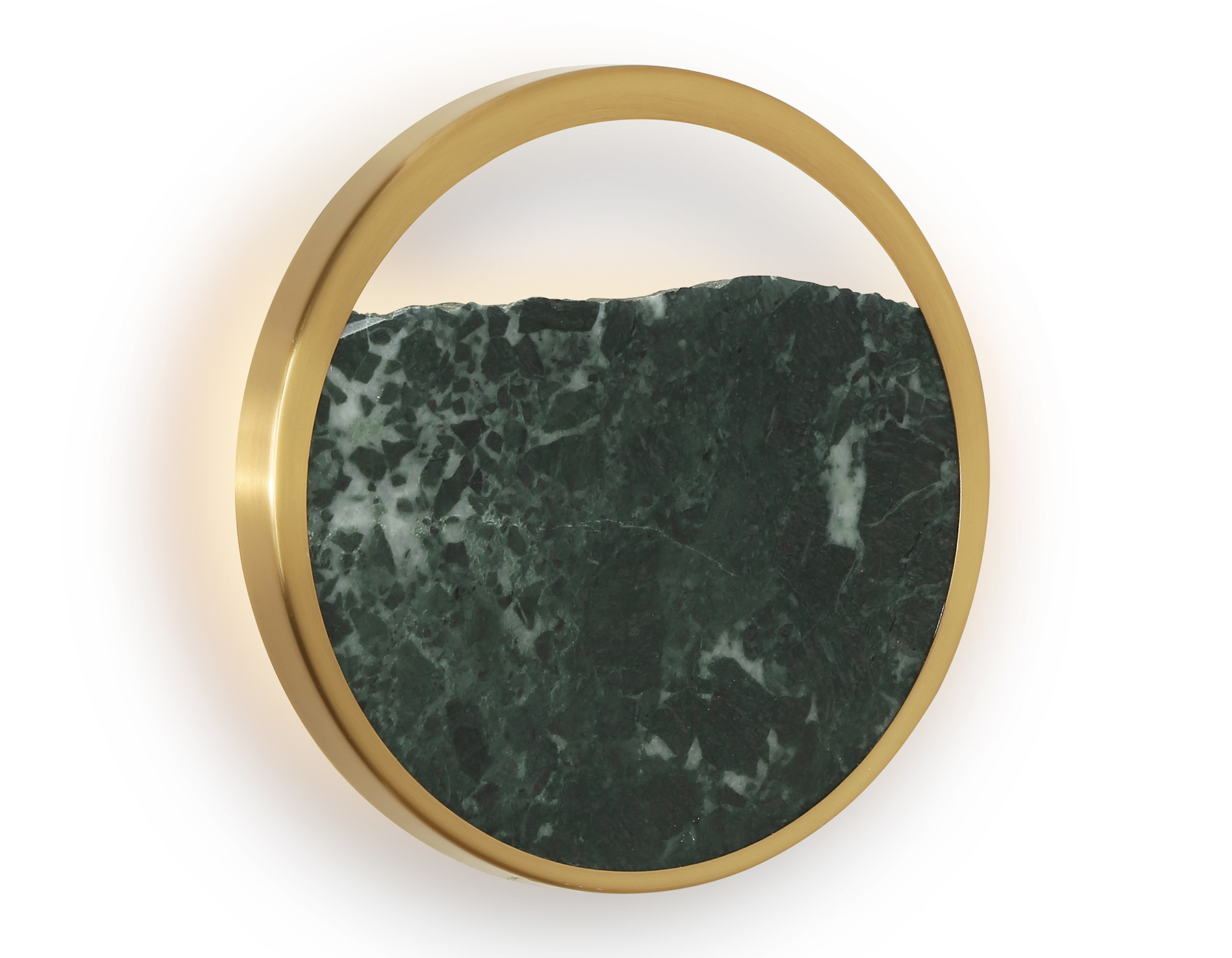 Настенный светильник с мрамором из коллекции HIGH LIGHT. Модель LH53611 представлена в современном стиле модерн. Светильник выполнен из металлического каркаса цвета латунь и декорирован элементами из зеленого мрамора. Эта модель оснащена встроенными светодиодами, благодаря чему вы забудете о замене дополнительных ламп. Светильник будет прекрасным дополнением в любом помещении.