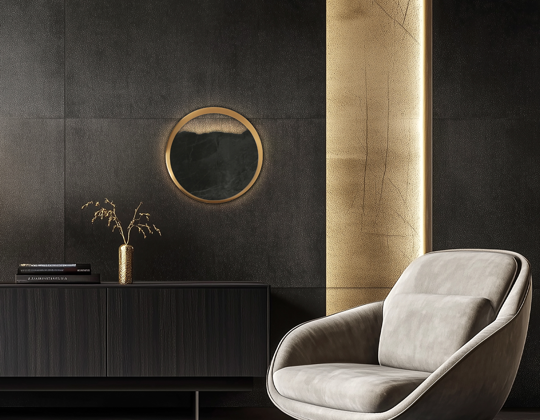 Настенный светильник с мрамором из коллекции HIGH LIGHT. Модель LH53613 представлена в современном стиле модерн. Светильник выполнен из металлического каркаса цвета латунь и декорирован элементами из черного мрамора. Эта модель оснащена встроенными светодиодами, благодаря чему вы забудете о замене дополнительных ламп. Светильник будет прекрасным дополнением в любом помещении.