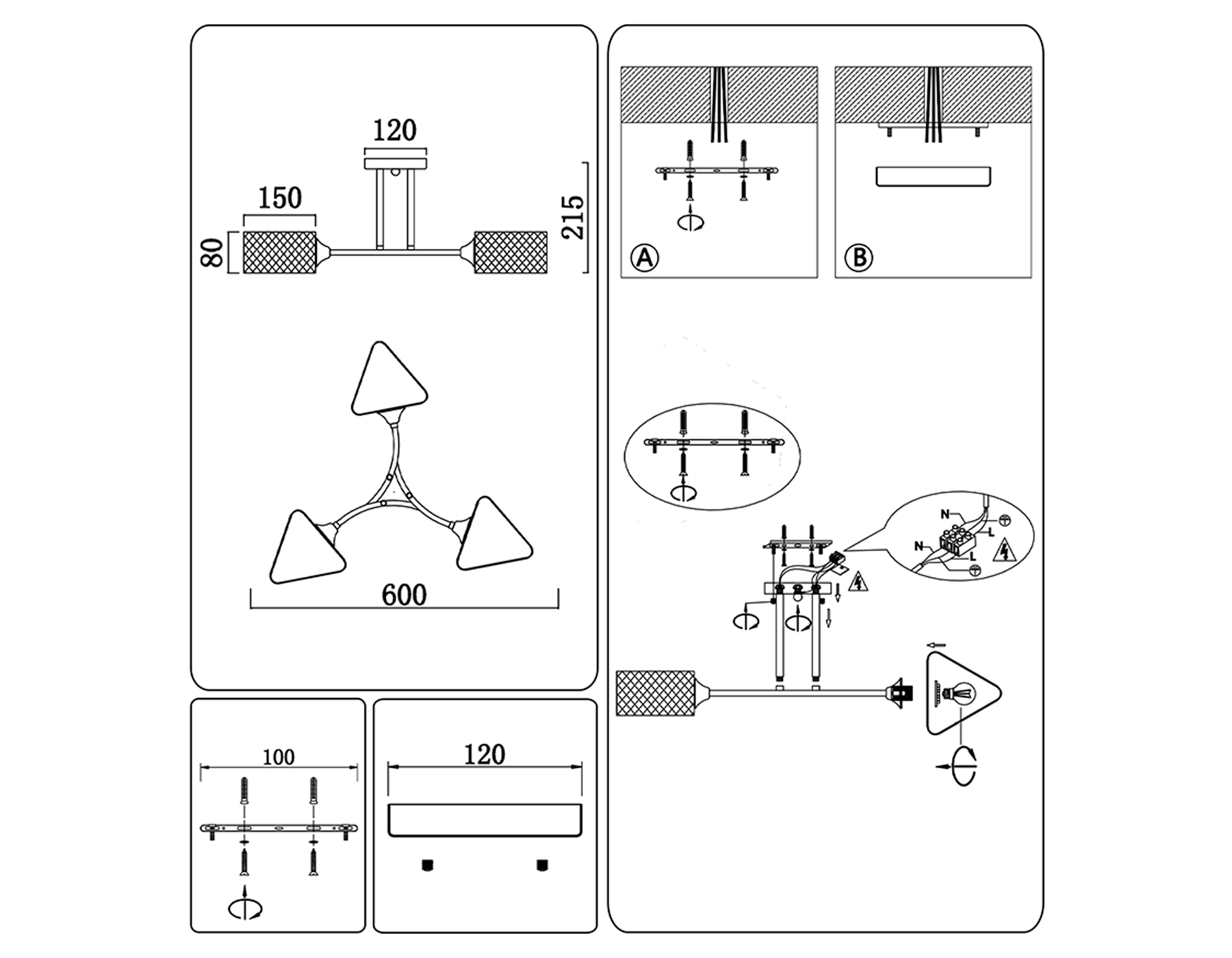 TR80171/3 SB/BK бронза/черный E27/3 max 40W D600*215