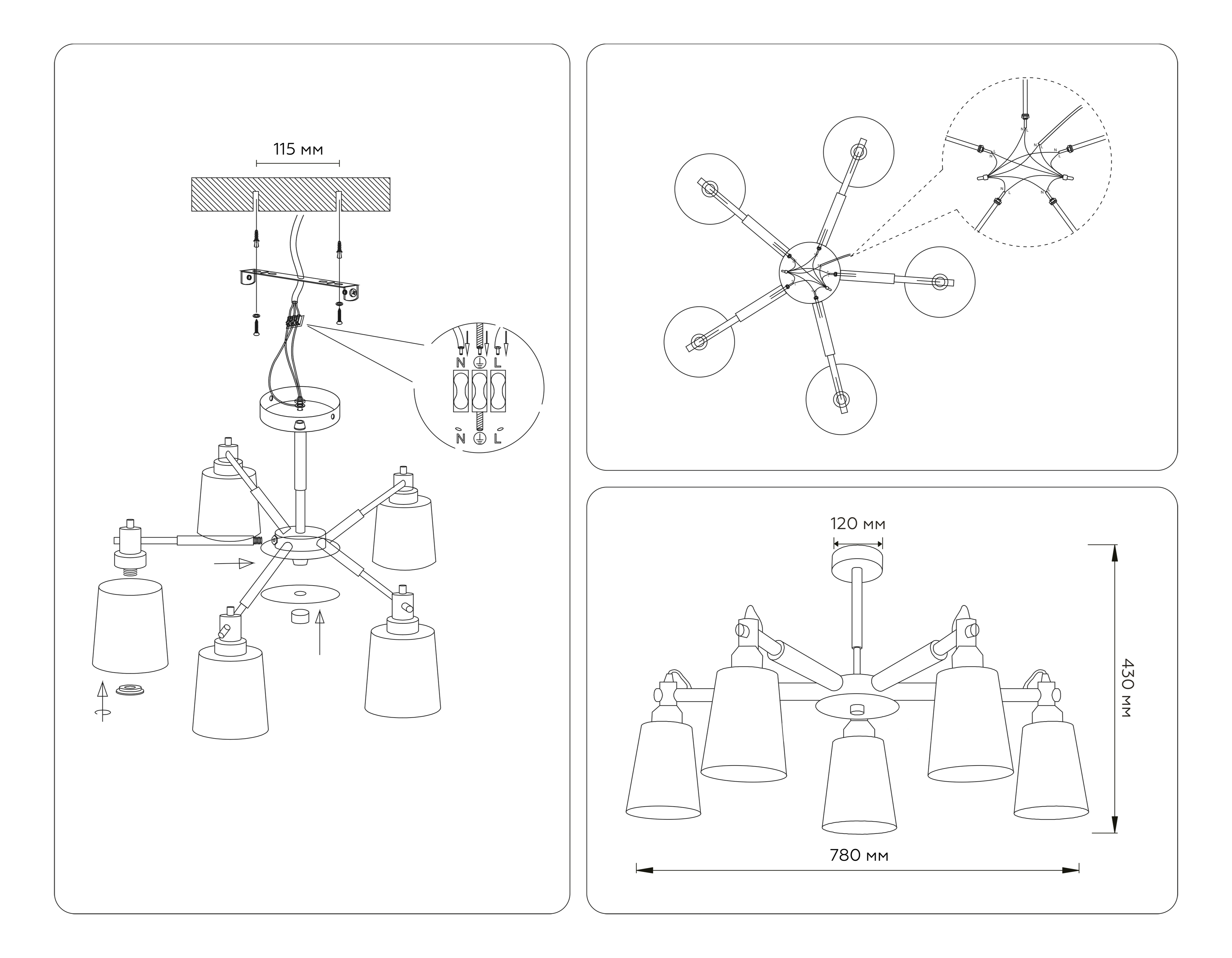 TR82208/5 WH/LW белый/светлое дерево E27/5 max 40W D780*430
