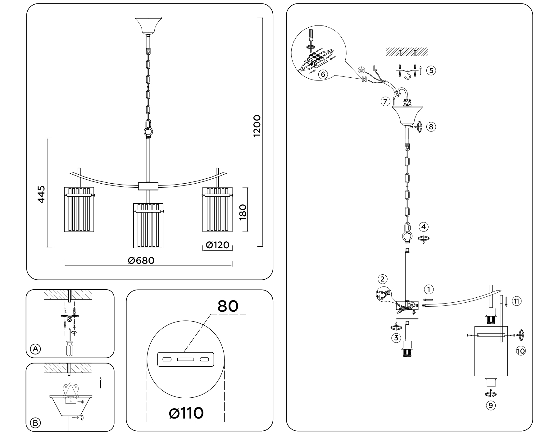Высота люстры с тросом
