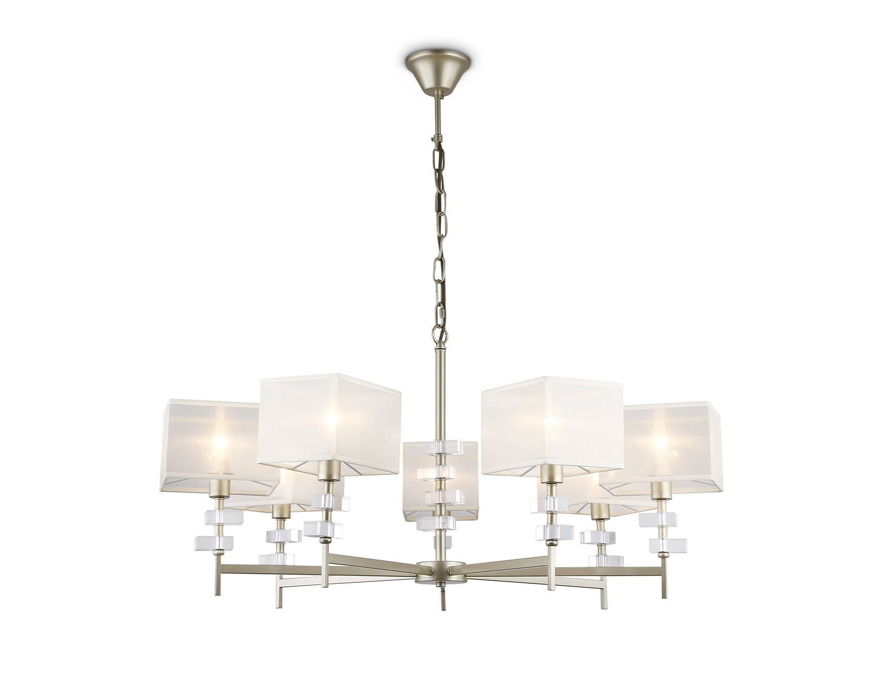 Подвесная люстра с абажурами из коллекции HIGH LIGHT. Модель LH71332 представлена в классическом стиле. Люстра выполнена из тканевых плафонов, металического каркаса золотого цвета и декорирована акриловыми элементами. Для данной модели подойдут лампы с цоколем Е14. Люстра будет прекрасным дополнением в любом помещении.