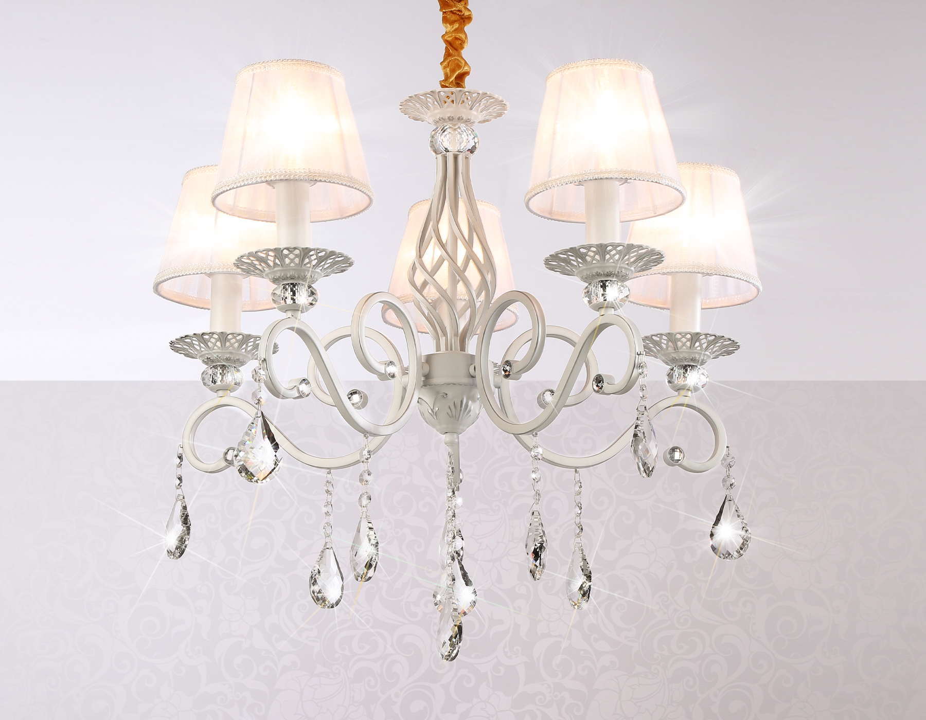 Подвесная люстра с абажурами из коллекции TRADITIONAL. Модель TR4547 представлена в классическом стиле. Люстра выполнена из тканевых плафонов белого цвета и декорирована превосходным прозрачным хрусталем, каркас изготовлен из металла белого и серебряного цвета. Для данной модели подойдут лампы с цоколем Е14. Люстра будет прекрасным дополнением в любом помещении.