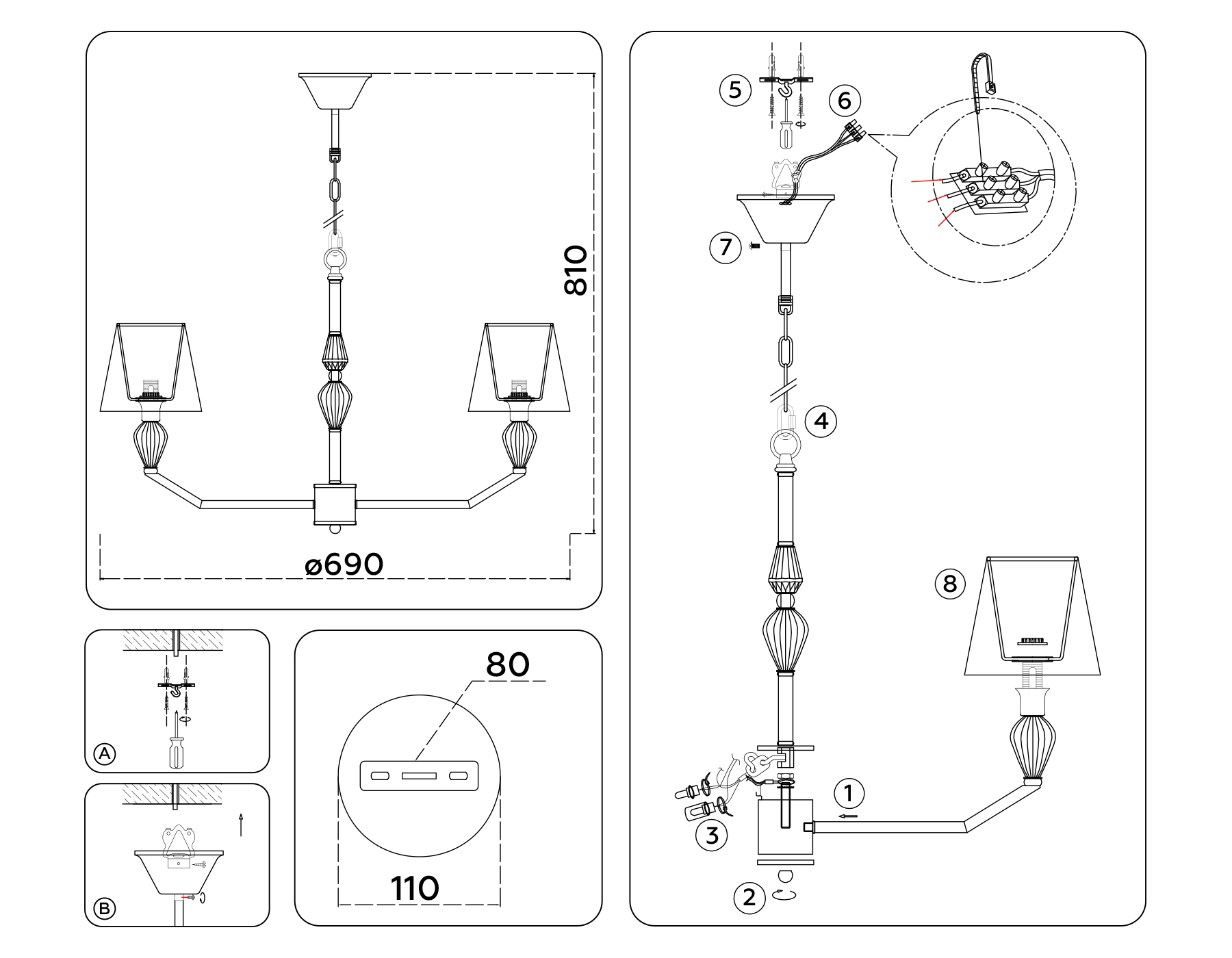LH75061/5 CH/DB хром/темно синий E14/5 max 40W D690*810