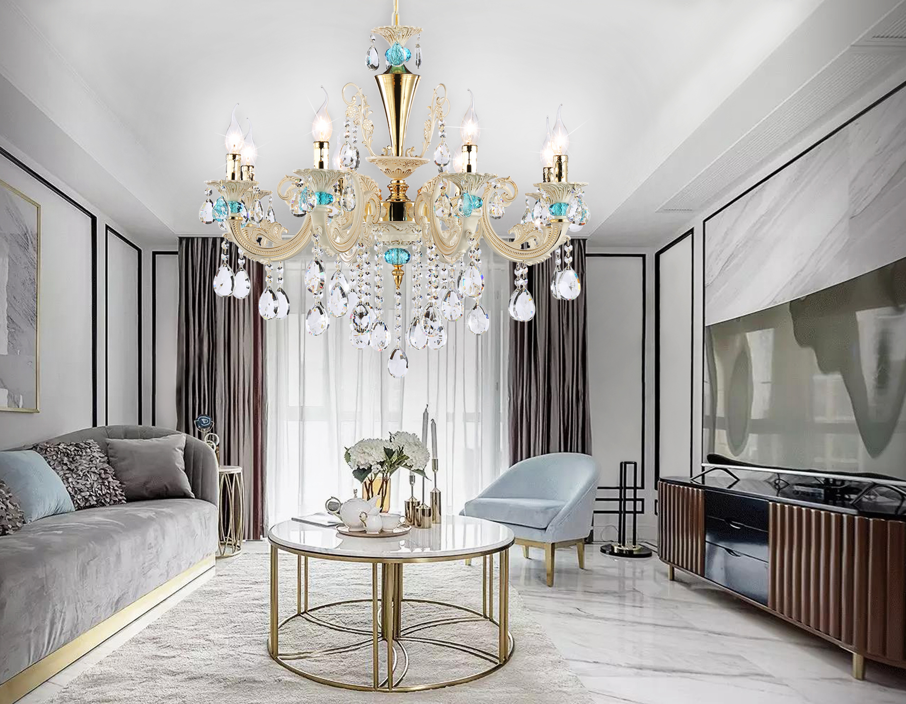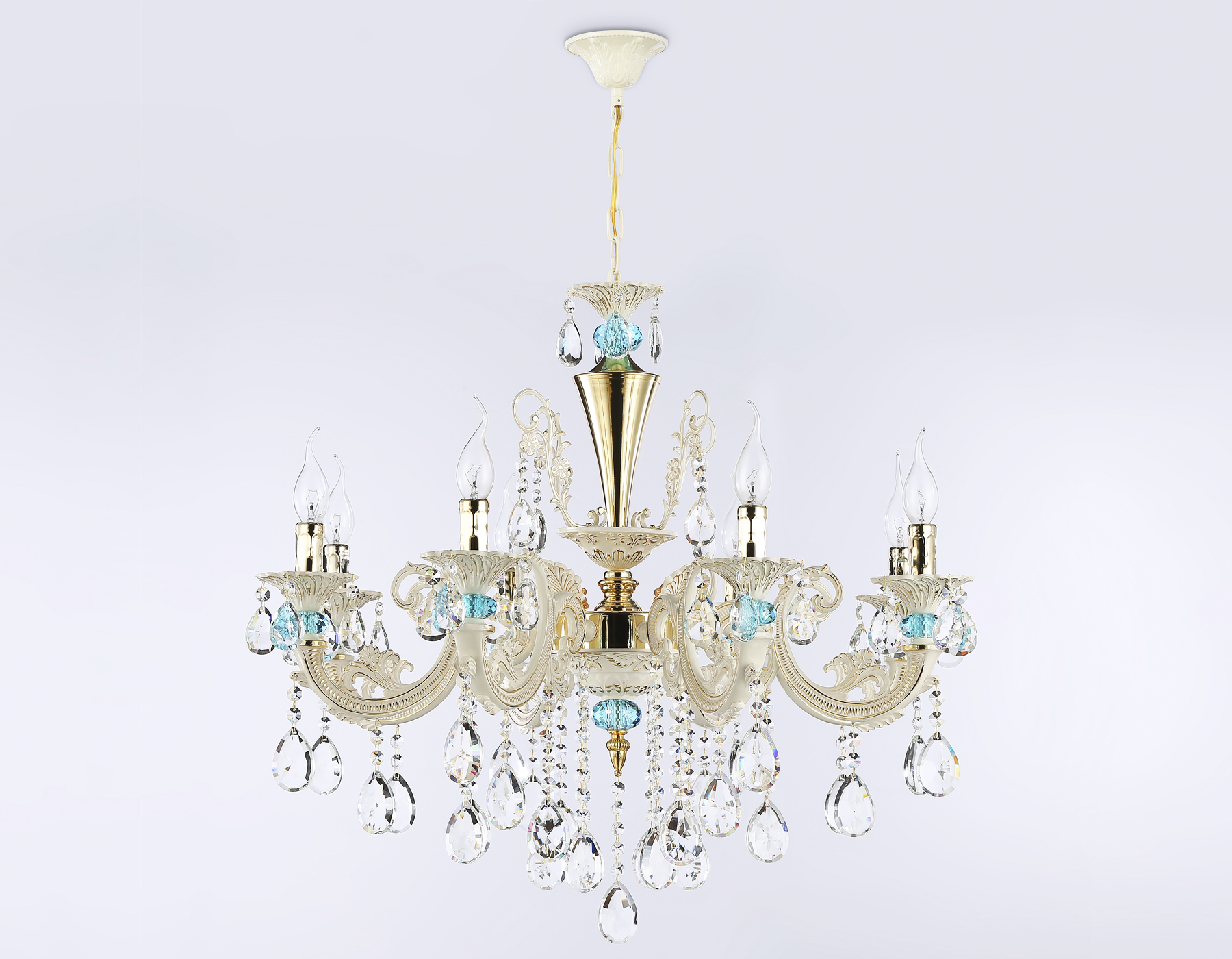 TR4926/8 GD/WH/CL золото/белый/прозрачный E14*8 max 40W D740*630
