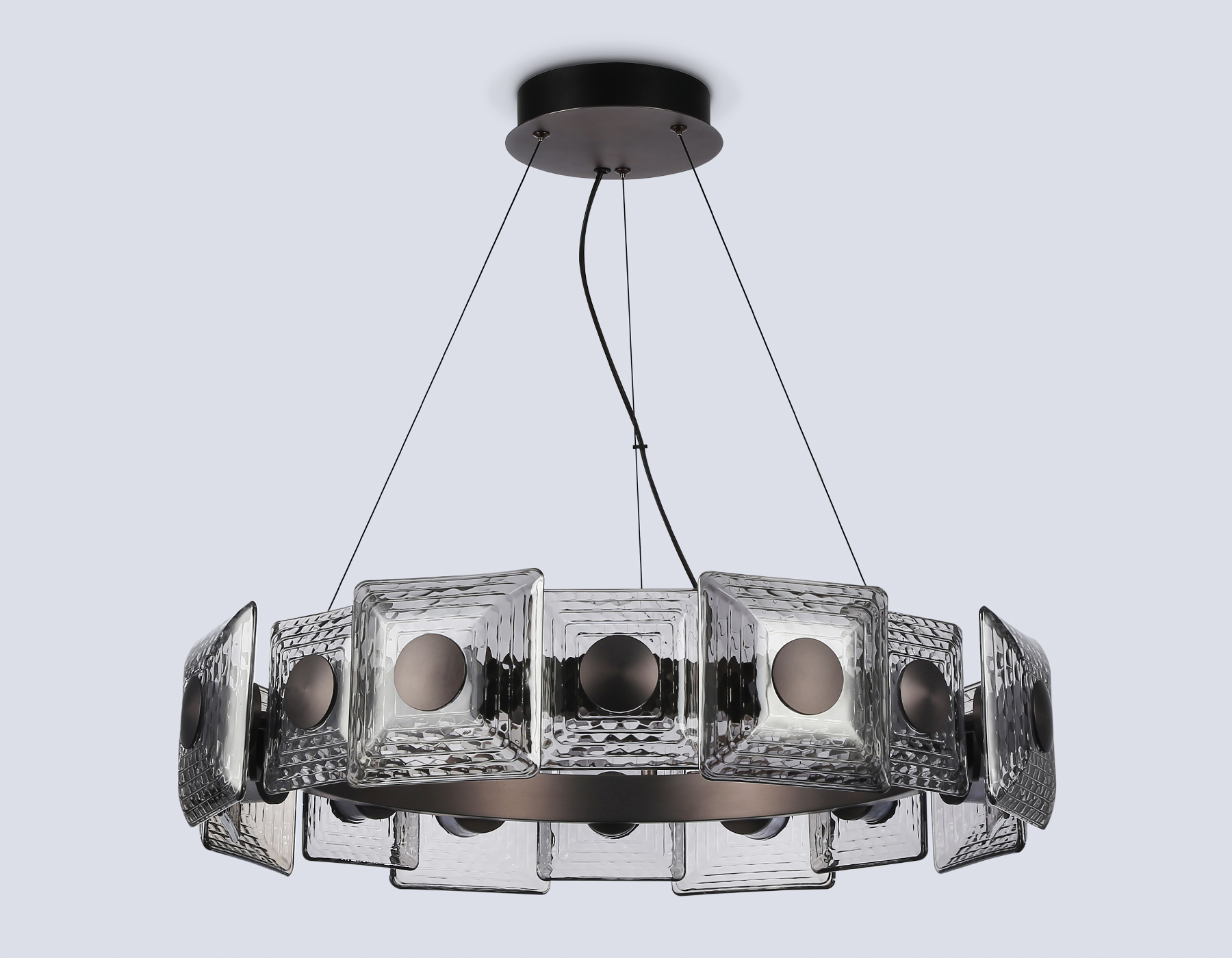 Подвесная светодиодная люстра из коллекции HIGH LIGHT. Модель LH31030 представлена в стиле модерн. Светильник выполнен из металлического каркаса серого цвета, стеклянных плафонов дымчатого цвета. Эта модель оснащена встроенными светодиодами, благодаря чему вы забудете о замене дополнительных ламп. Светильник будет прекрасным дополнением в любом помещении.