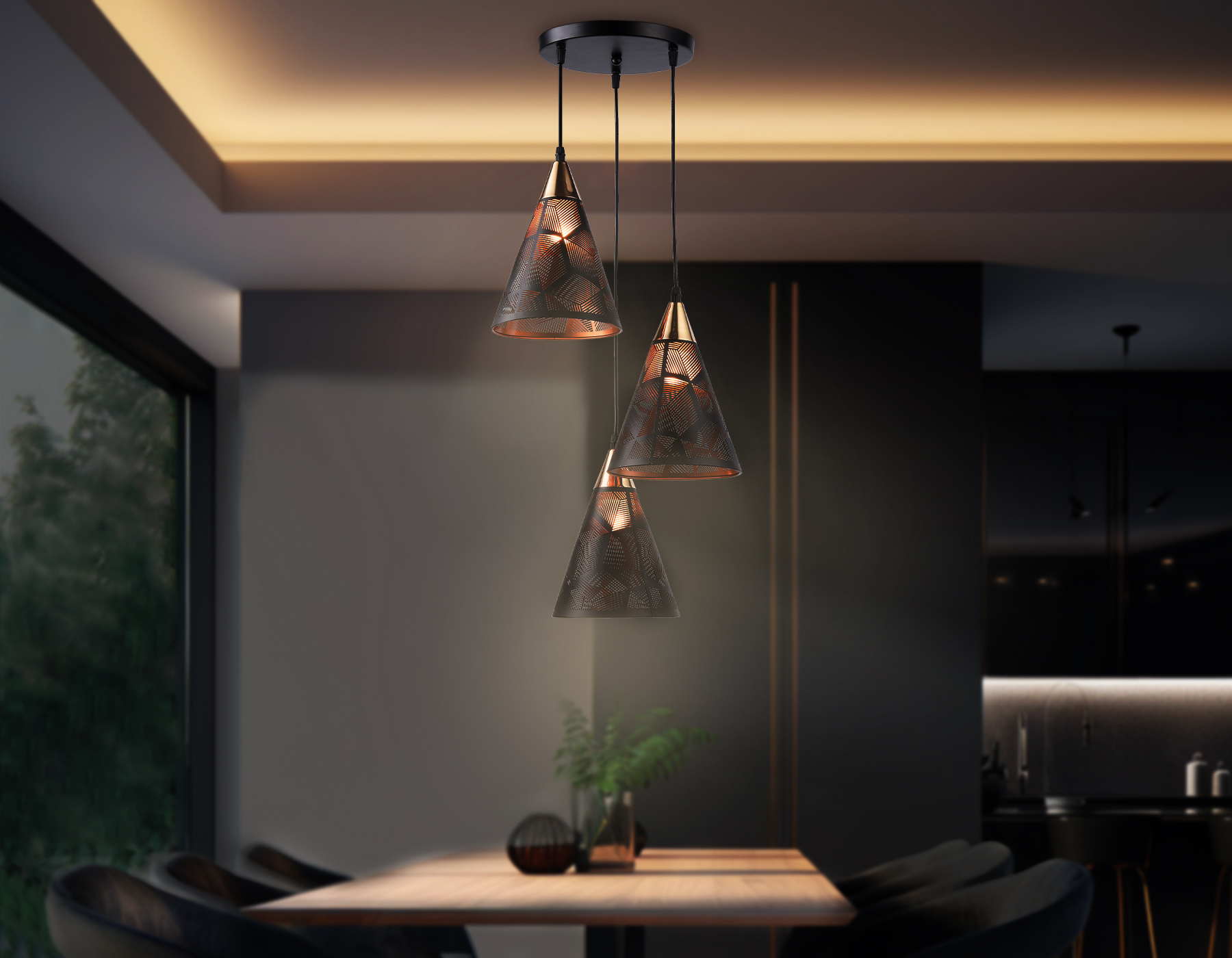 Подвесой светильник из коллекции TRADITIONAL. Модель TR8435 представлена в современном стиле лофт. Светильник выполнен из черного металлического каркаса с золотым декором и металлических плафонов. Для данной модели подойдут лампы с цоколем Е27. Светильник будет прекрасным дополнением в любом помещении.