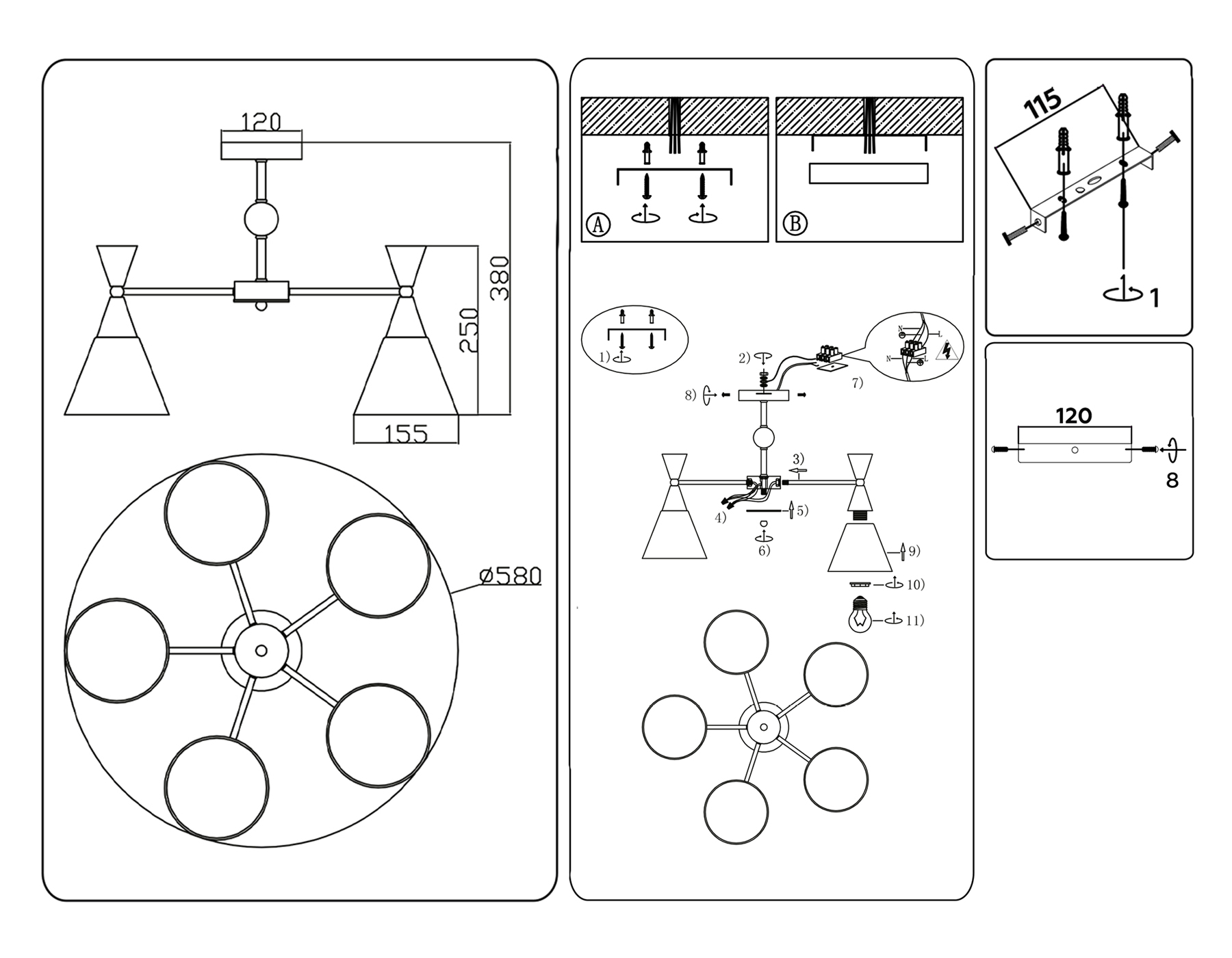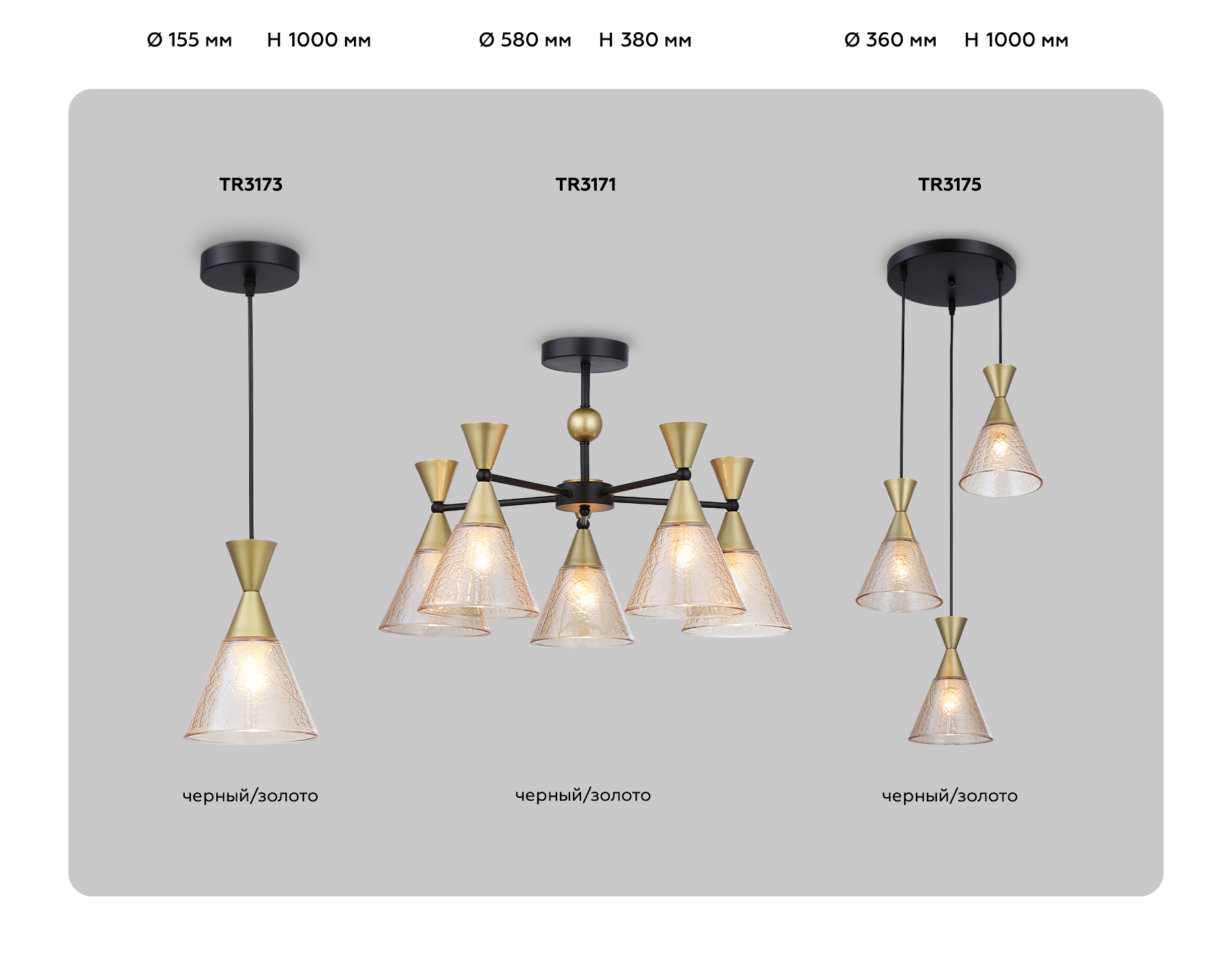 TR3171/5 BK/GD черный/золото E27/5 max 60W D580*380