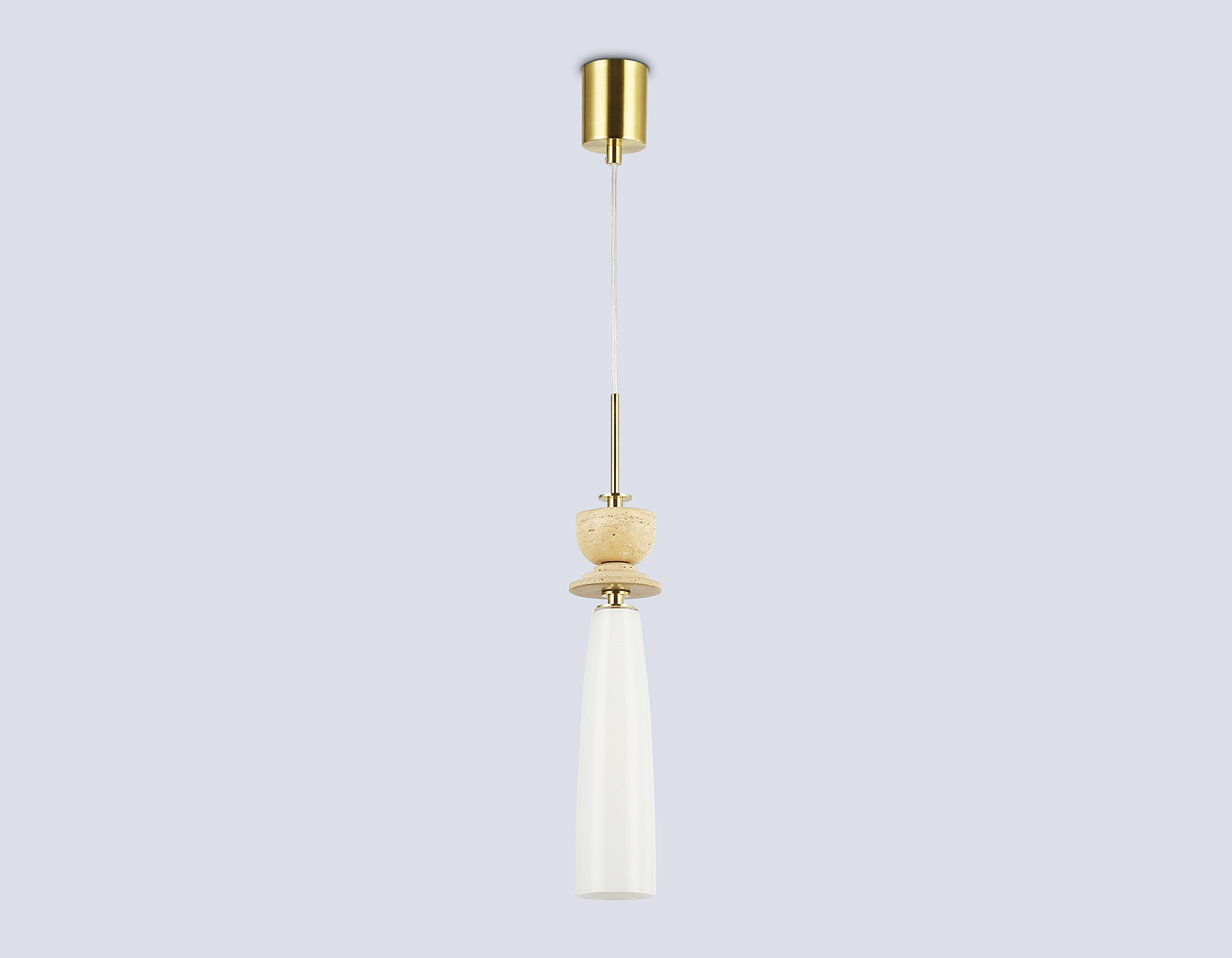 Подвесной светильник с травертином из коллекции HIGH LIGHT. Модель LH75365 представлена в стиле модерн. Люстра выполнена из металлического каркаса цвета "золото", плафона из белого матового стекла и декорирована элементами из травертина. Для данной модели подойдут лампы с цоколем G9. Светильник будет прекрасным дополнением в любом помещении.