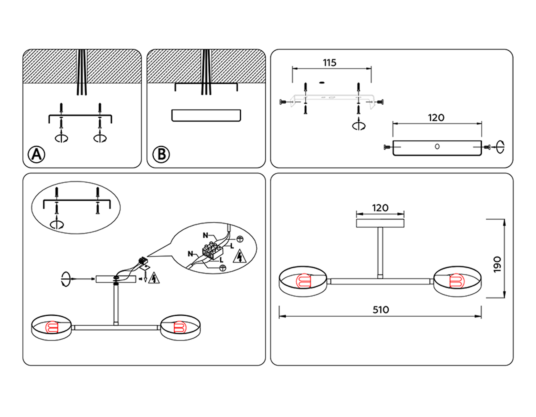 TR8225/2 BK/SB черный/бронза E27/2 max 40W 510*165*190