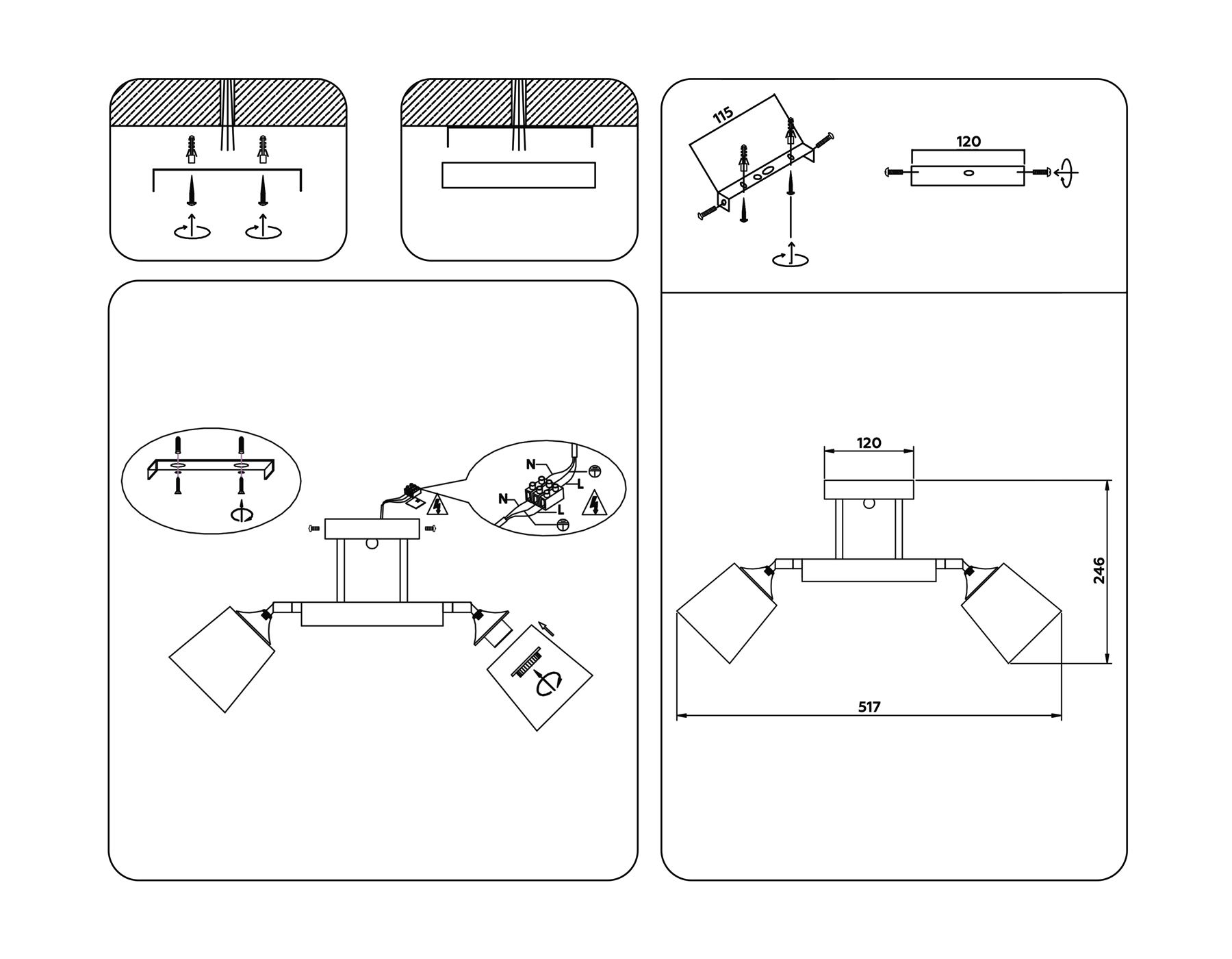 TR9511/2 WH/CH/FR белый/хром/белый матовый E27*2 max 40W 517*100*246