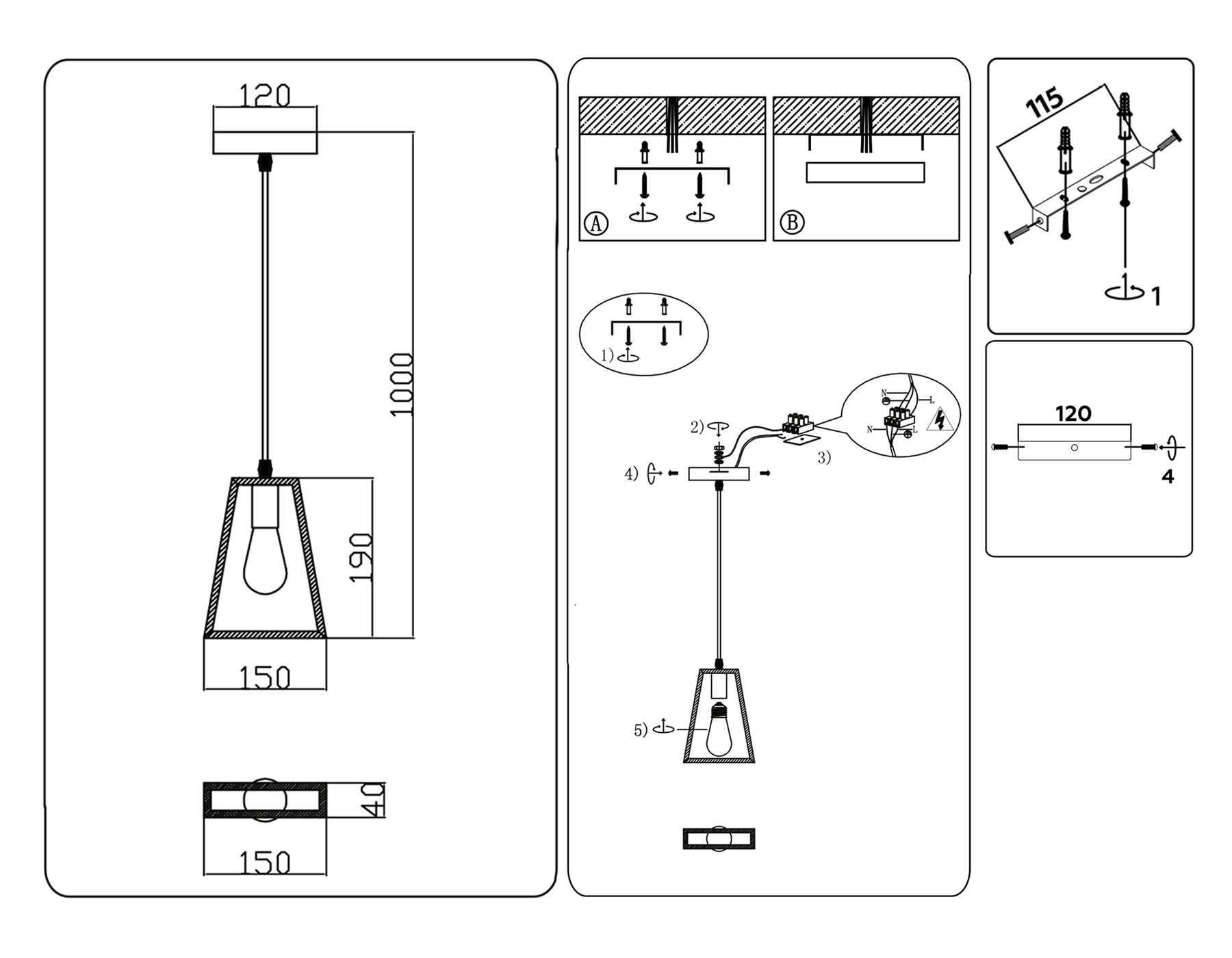 TR80497 BK/LW черный/светлое дерево E14 max 60W D150*1000