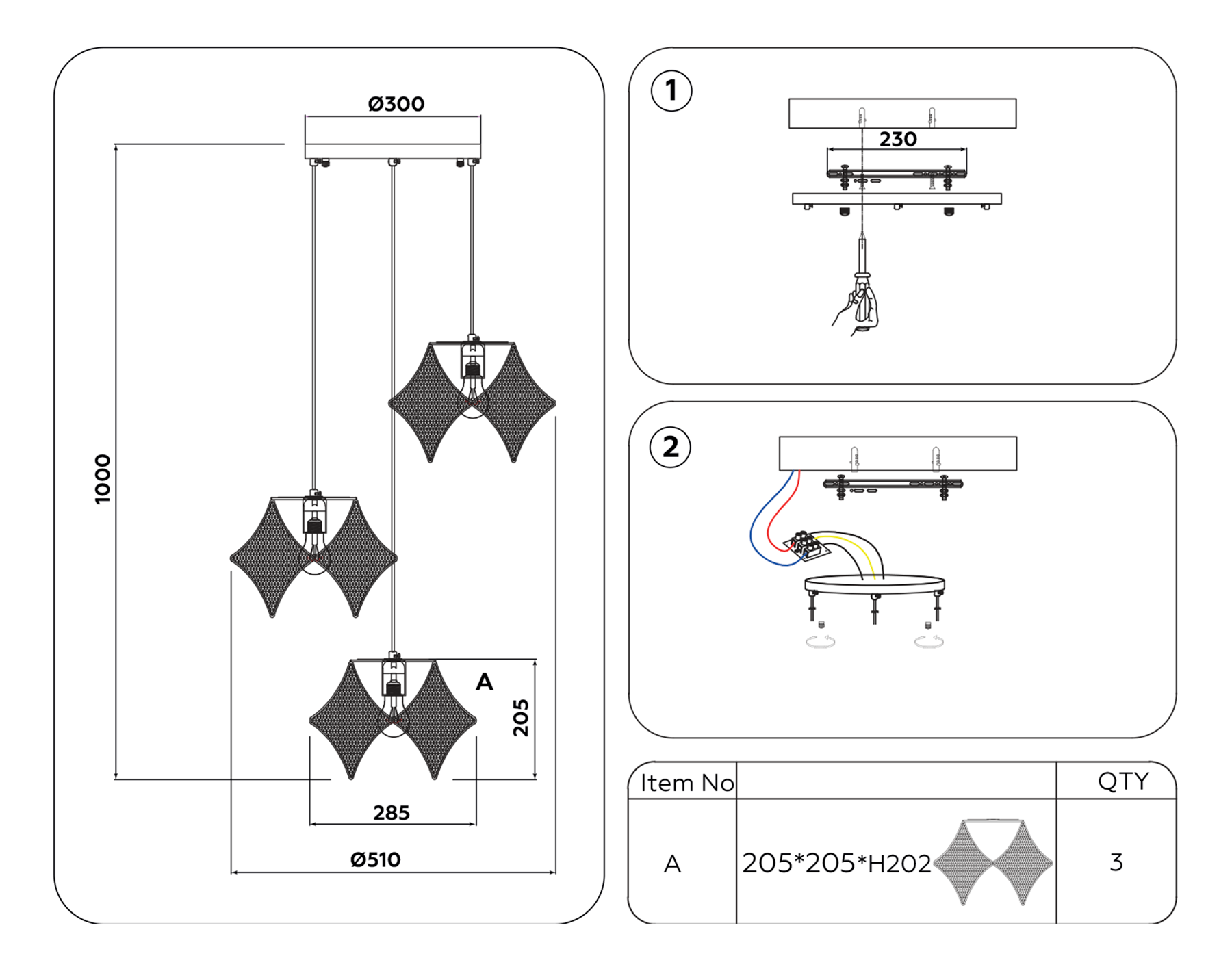 Высота люстры с тросом