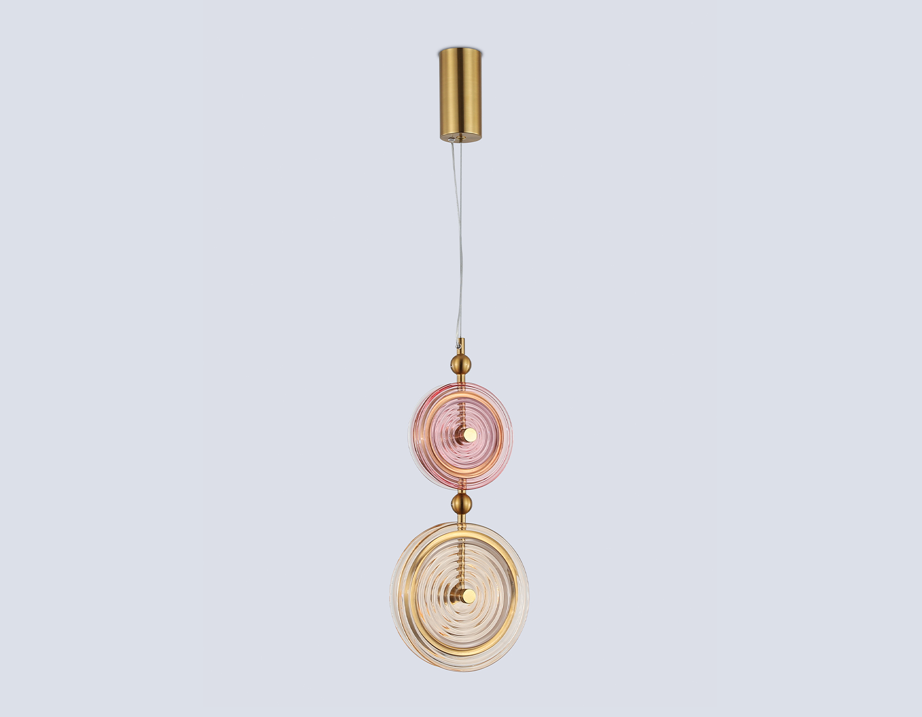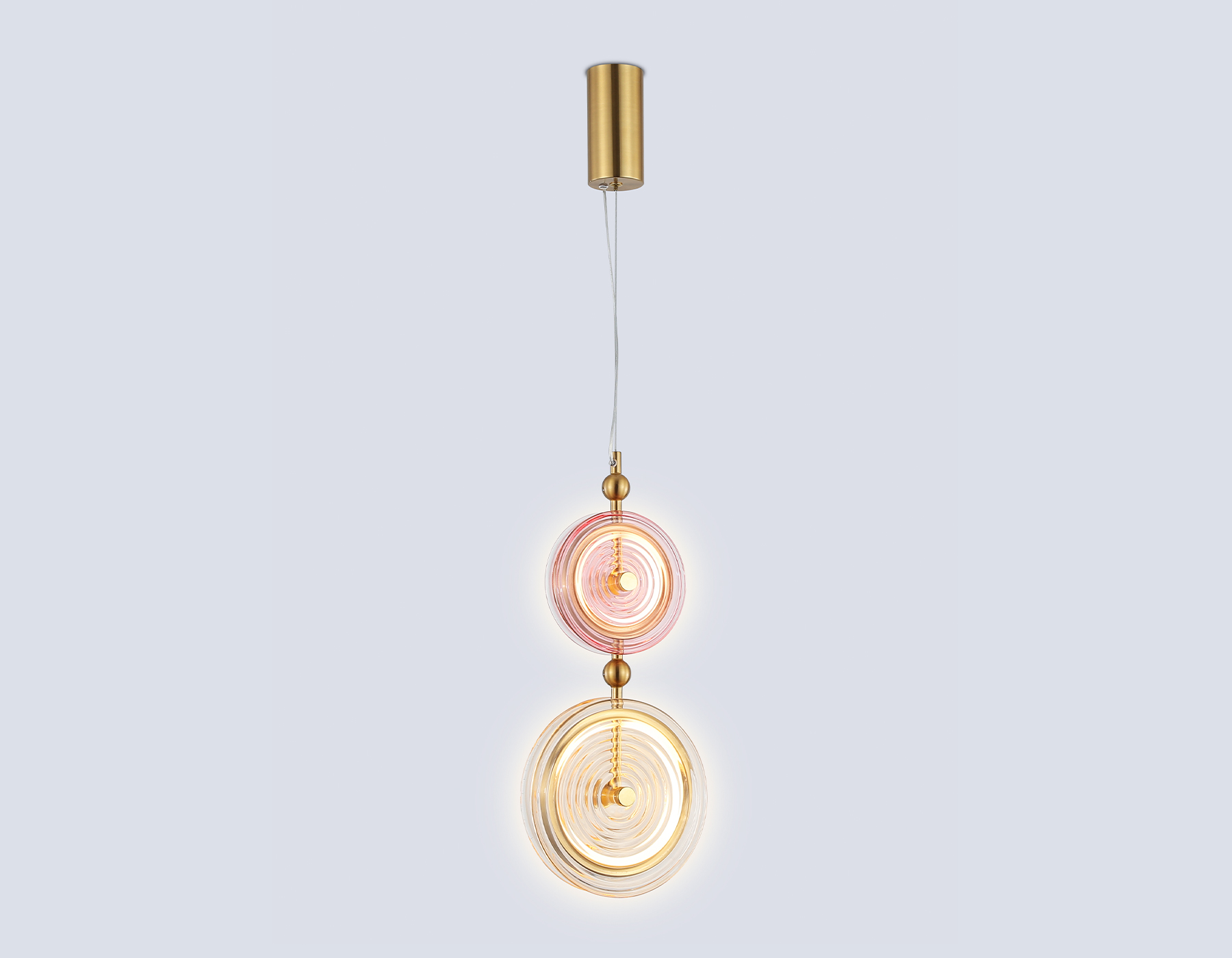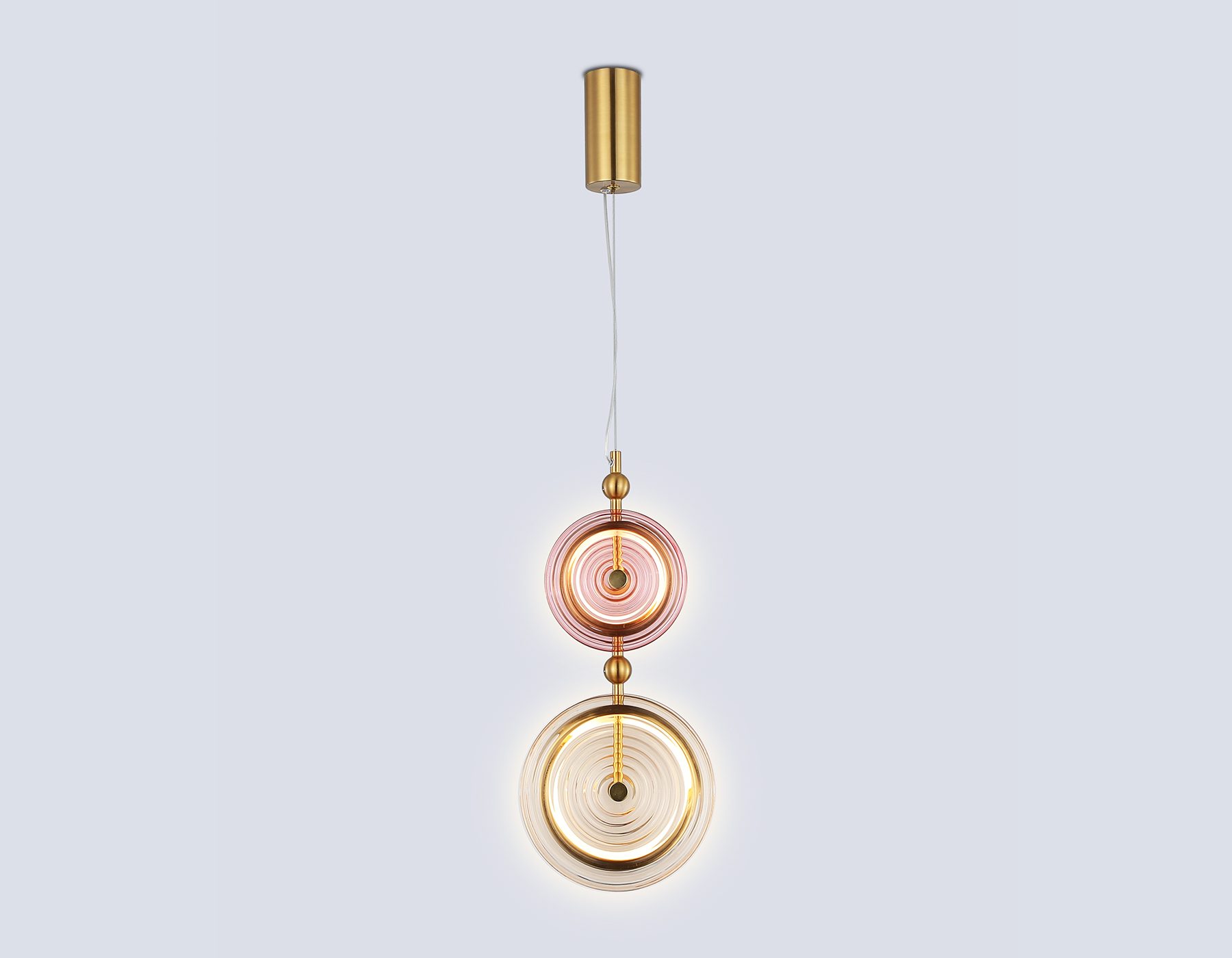 Подвесной светодиодный светильник из коллекции HIGH LIGHT. Модель LH31129 представлена в стиле неоклассика. Светильник выполнен из металлического каркаса цвета латунь и двух стеклянных плафонов розового и желтого оттенков. Эта модель оснащена встроенными светодиодами, благодаря чему вы забудете о замене дополнительных ламп. Светильник будет прекрасным дополнением в любом помещении.