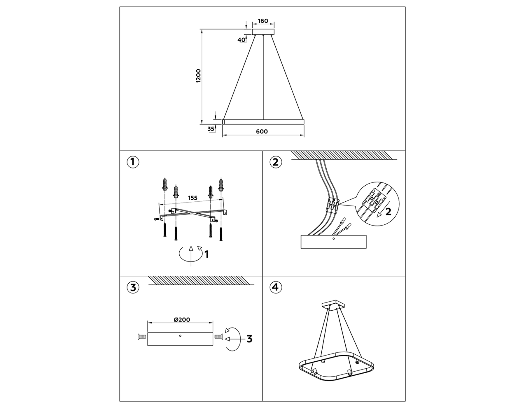 Высота люстры с тросом