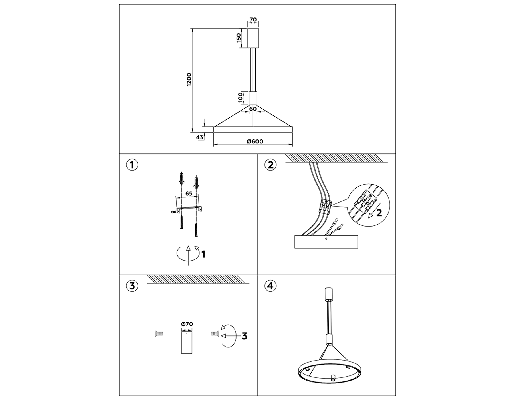 Высота люстры с тросом