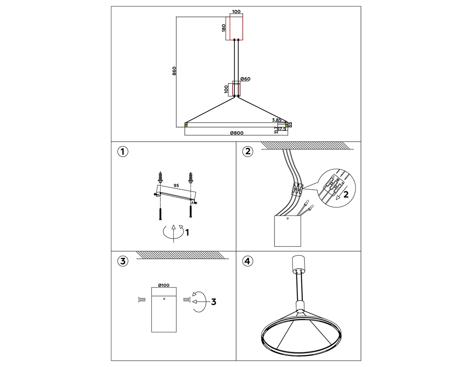 Высота люстры с тросом