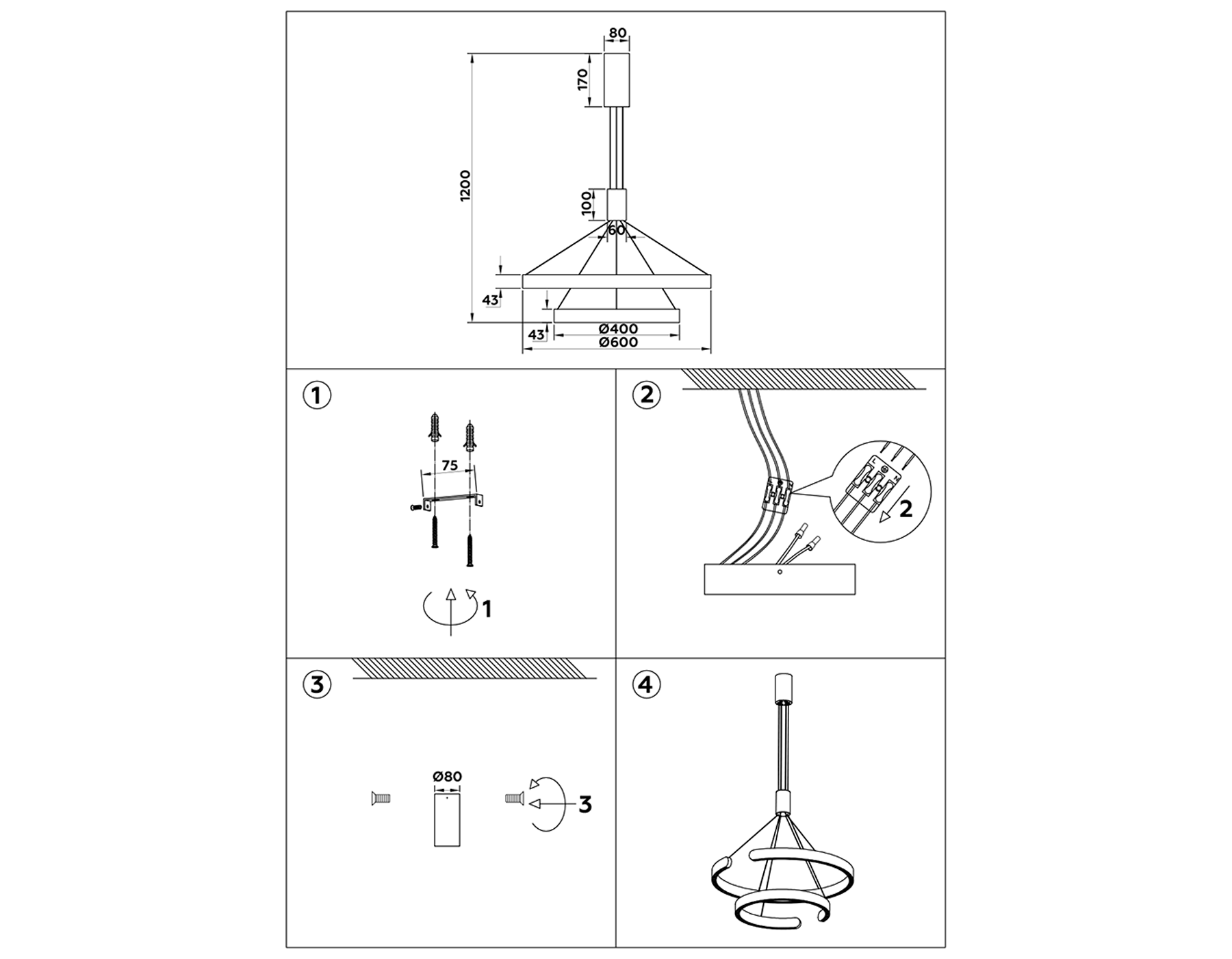Высота люстры с тросом