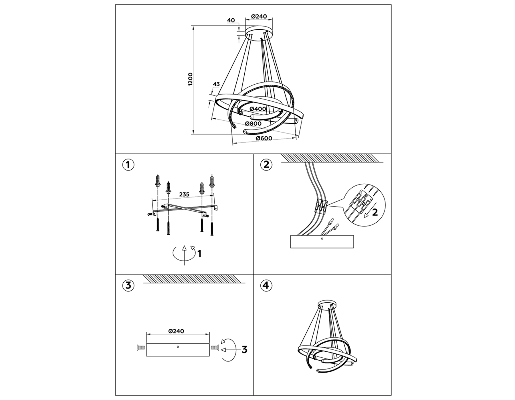 Высота люстры с тросом