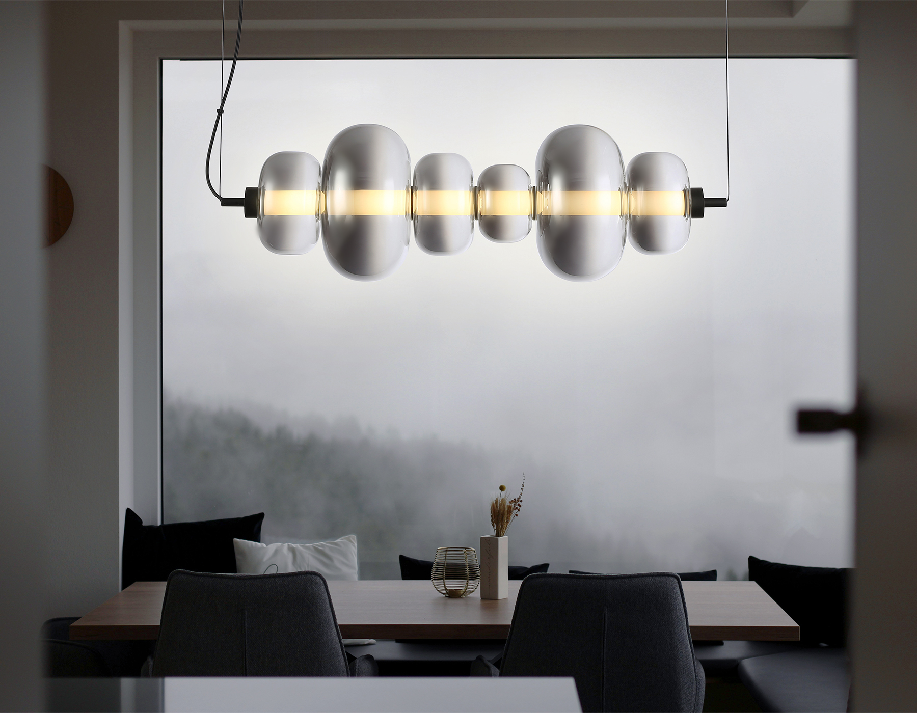 Подвесной светодиодный светильник из коллекции HIGH LIGHT. Модель LH11072 представлена в стиле модерн. Светильник выполнен из металлического каркаса черного цвета и стеклянных дымчатых плафонов. Эта модель оснащена встроенными светодиодами, благодаря чему вы забудете о замене дополнительных ламп. Светильник будет прекрасным дополнением в любом помещении.
