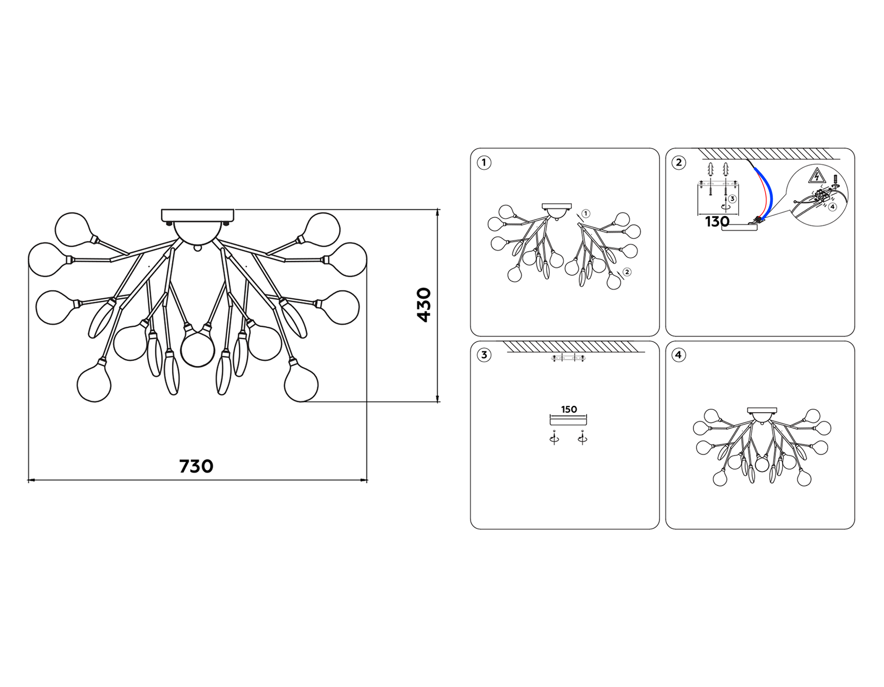 потолочная люстра (лампы в комплекте)