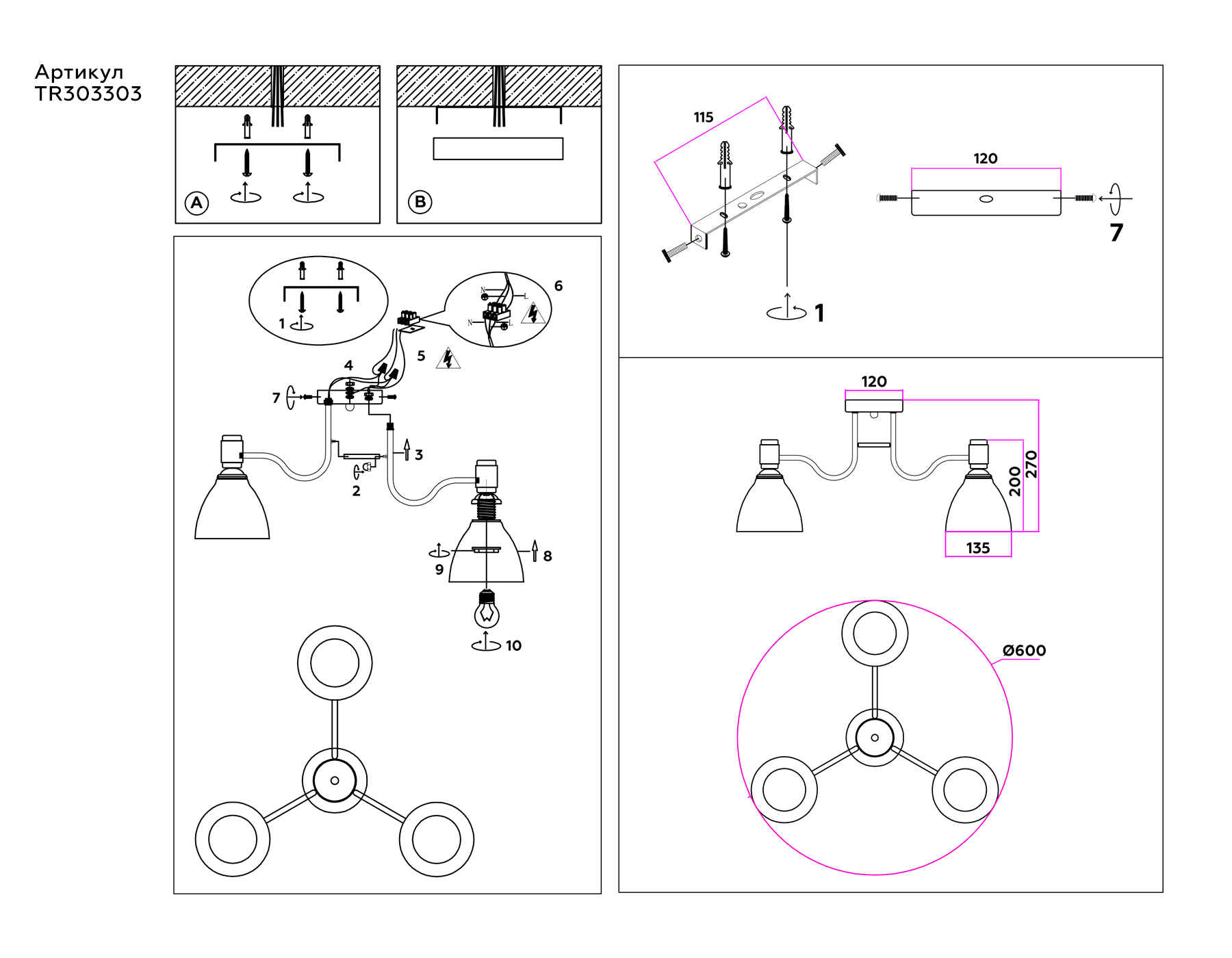 Потолочный светильник из коллекции TRADITIONAL. Модель TR303303 представлена в современном стиле неоклассика. Светильник выполнен в черном и золотом цвете, каркас изготовлен из металла, плафоны из белого матового стекла. Для данной модели подойдут лампы с цоколем Е27. Светильник будет прекрасным дополнением в любом помещении.