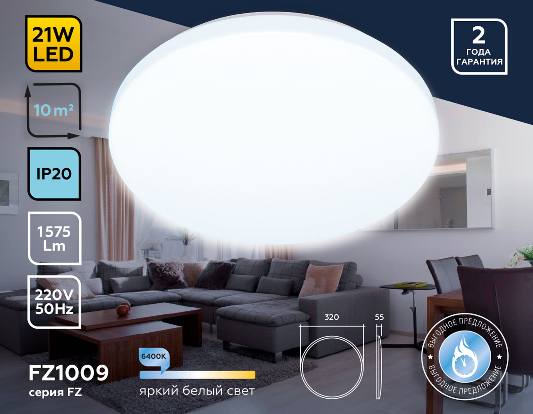 FZ1009 WH белый 21W 6400K D320*55 (Без ПДУ)