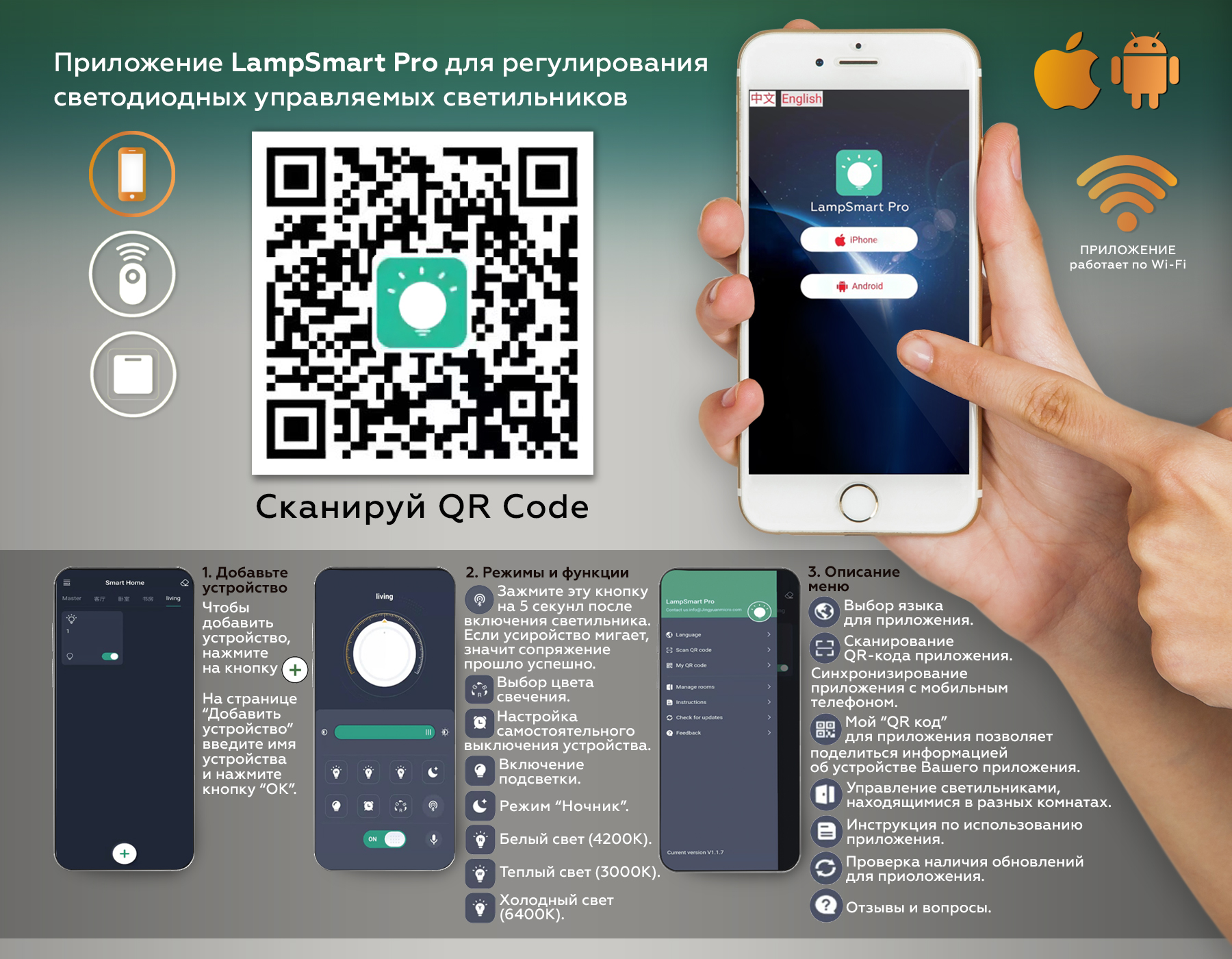 FL51457/1+1 WH белый 60W 3000K-6400K+4200K D500*110 (ПДУ РАДИО 2.4G)