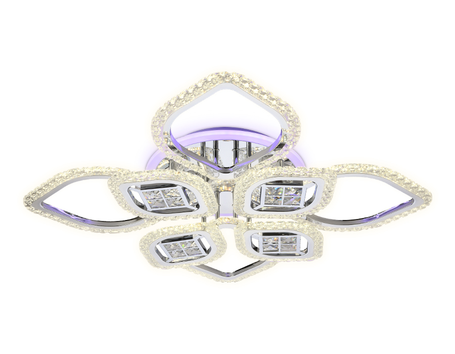Потолочный светодиодный светильник из коллекции ACRYLICA Ice. Великолепная модель FA283 выполнена в современном стиле Неоклассика. Бесподобный хрустальный декор придает особый шик светильникам этой коллекции. Эта модель цветочной формы, металлический корпус, с вставками из акрила. Благодаря встроенным в конструкцию светодиодам, вы можете с уверенностью забыть о поиске или замене дополнительных ламп. С помощью мобильного приложения, а так же радиоуправляемого пульта вы сможете регулировать цветовую температуру, яркость освещения и ночной режим. Эта модель подходит для натяжных потолков и будет прекрасным дополнением в гостиной, спальне или детской комнате.