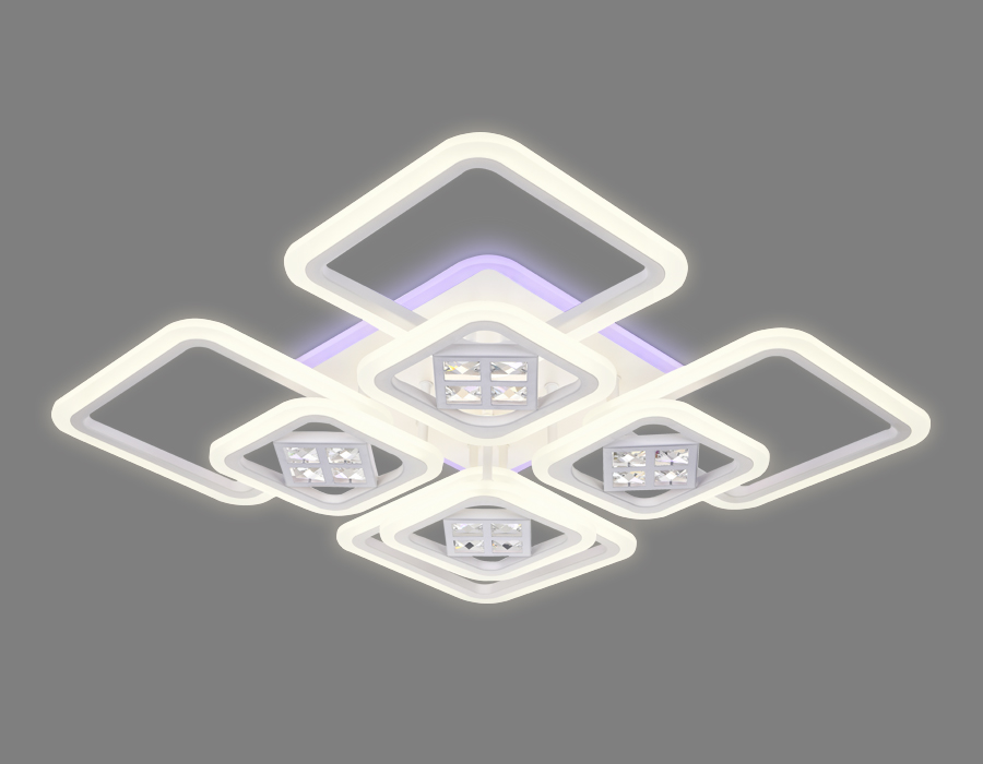 Потолочный светодиодный светильник из коллекции ACRYLICA Ice. Великолепная модель FA289 выполнена в современном стиле Неоклассика. Бесподобный хрустальный декор придает особый шик светильникам этой коллекции. Эта модель квадратной формы, металлический корпус, с вставками из акрила. Благодаря встроенным в конструкцию светодиодам, вы можете с уверенностью забыть о поиске или замене дополнительных ламп. С помощью мобильного приложения, а так же радиоуправляемого пульта вы сможете регулировать цветовую температуру, яркость освещения и ночной режим. Эта модель подходит для натяжных потолков и будет прекрасным дополнением в гостиной, спальне или детской комнате.