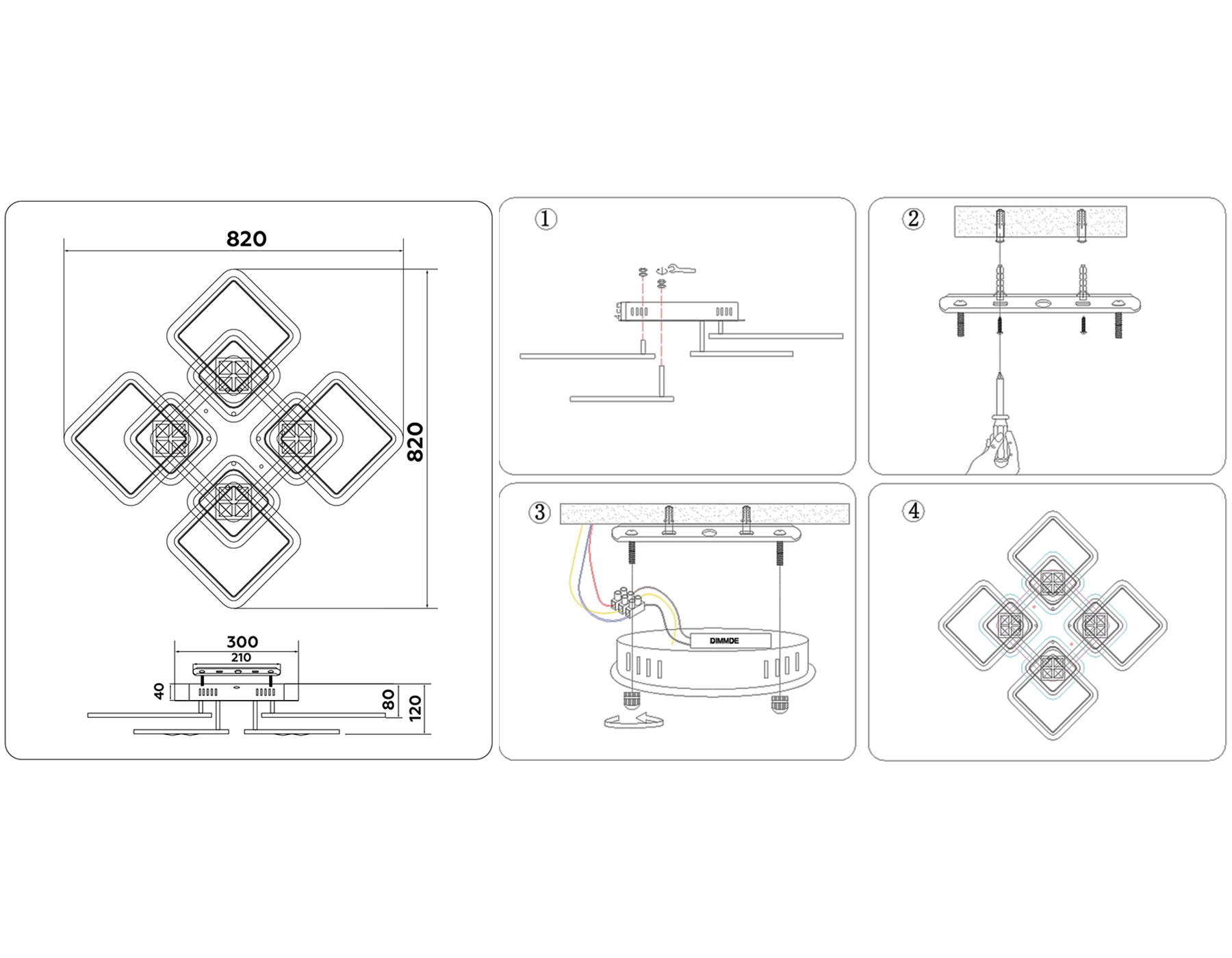 FA289/4+4 WH белый 176W 820*820*120 (ПДУ РАДИО 2.4G)