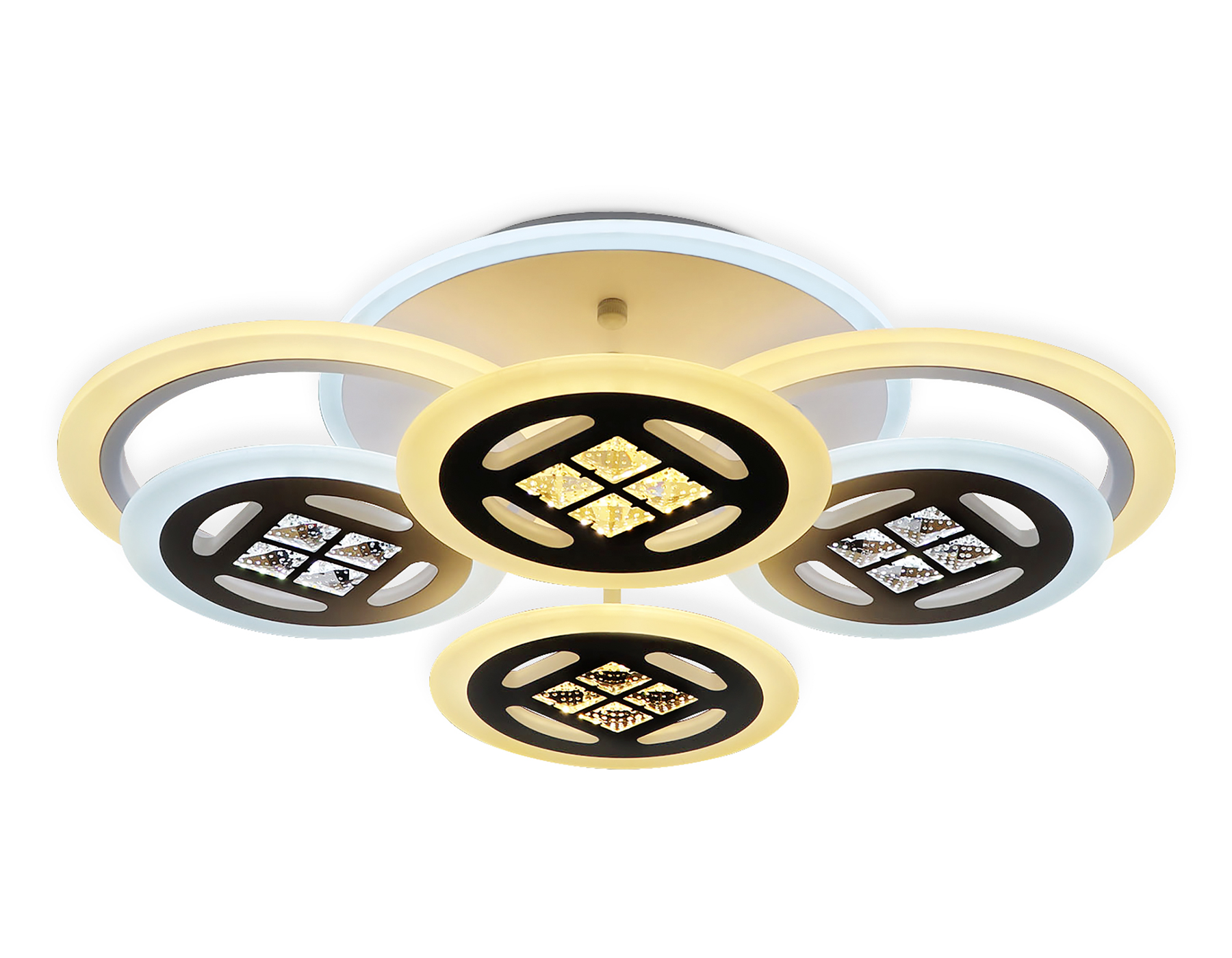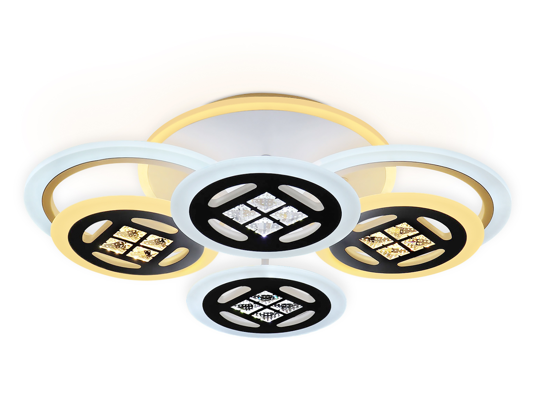 Современный потолочный светодиодный светильник, коллекция ACRYLICA. Модель FA2951 представлена в современном стиле Неоклассика. Светильник выполнен в белом цвете, состоит из 5 акриловых плафонов на металлическом каркасе. Эта модель оснащена встроенными светодиодами, благодаря чему вы забудете о замене дополнительных ламп. Так же с помощью инфракрасного пульта вы сможете регулировать цветовую температуру, яркость освещения и ночной режим. Данная модель подходит для натяжных потолков и будет прекрасным дополнением в любом помещении.