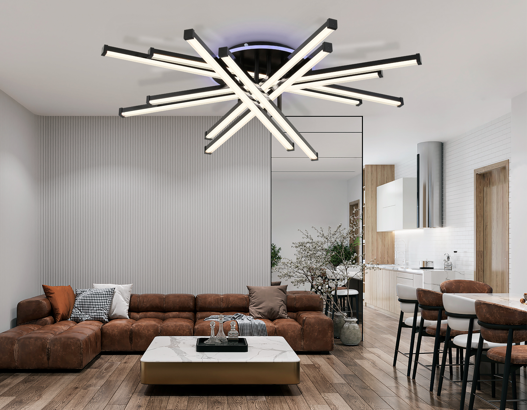 Потолочный светодиодный светильник с пультом управления из серии COMFORT. Модель FL6276 представлена в современном стиле хай-тек и техно. Светильник выполнен в черном цвете. Изготовлен из высококачественного пластика и метала и декорирован двойным рассеивателем белого и прозрачного цвета. Данная модель оснащена RGB подсветкой. В конструкцию этого светильника уже встроены светодиоды, что исключает поиск или замену дополнительных ламп. С помощью инфракрасного о пульта вы сможете регулировать цветовую температуру, яркость освещения и ночной режим. Эти светильники подходят для натяжных потолков и будут прекрасным дополнением в гостиной, спальне или детской комнате.