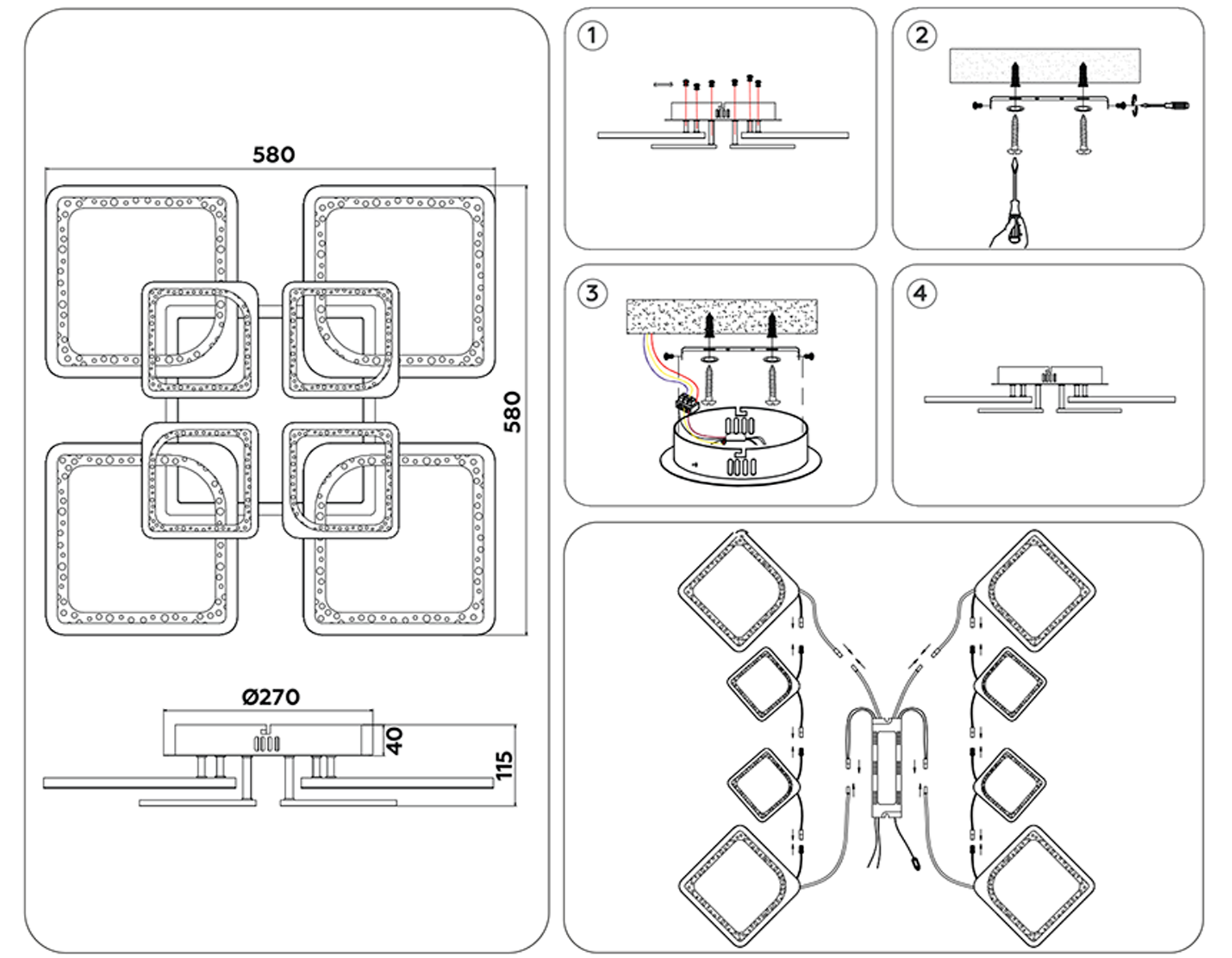 FA4424/4+4 BK черный 150W 3000K+6400K/4200K/6400K+3000K 580*580*120 (ПДУ ИК)
