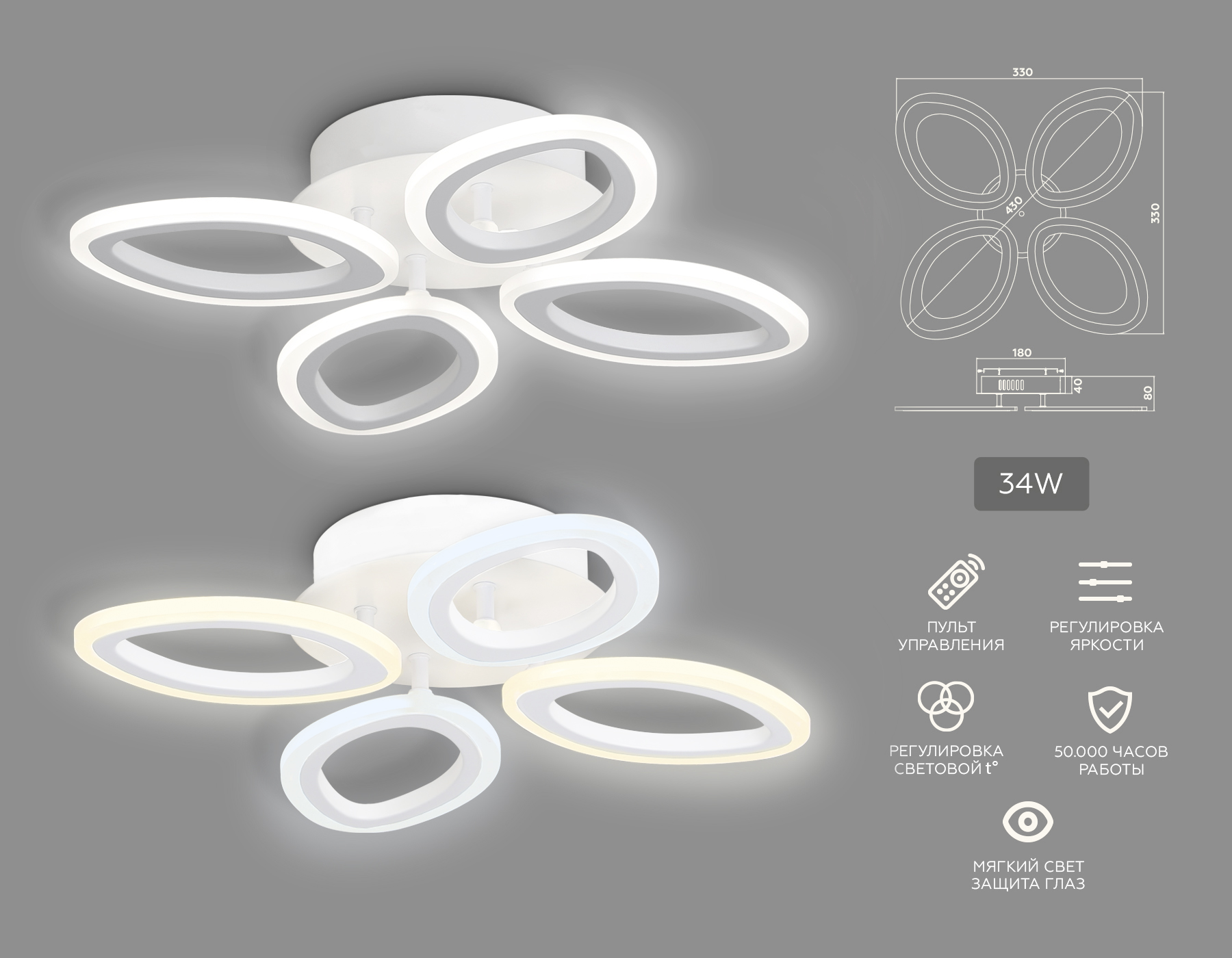 светодиодный светильник, пульт (Инфракрасный)