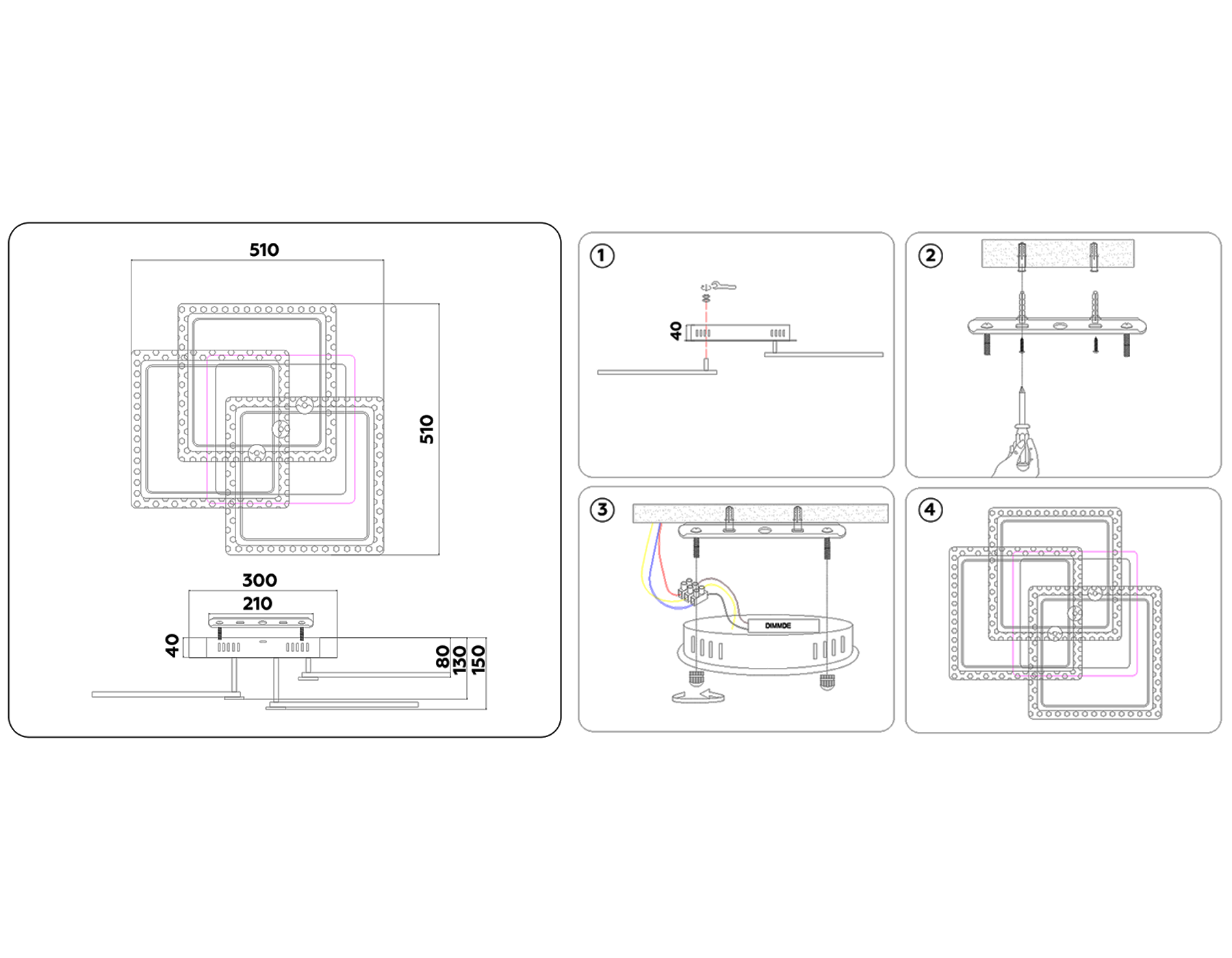 FA536/3 CH хром 118W 510*510*150 (ПДУ РАДИО 2.4G)