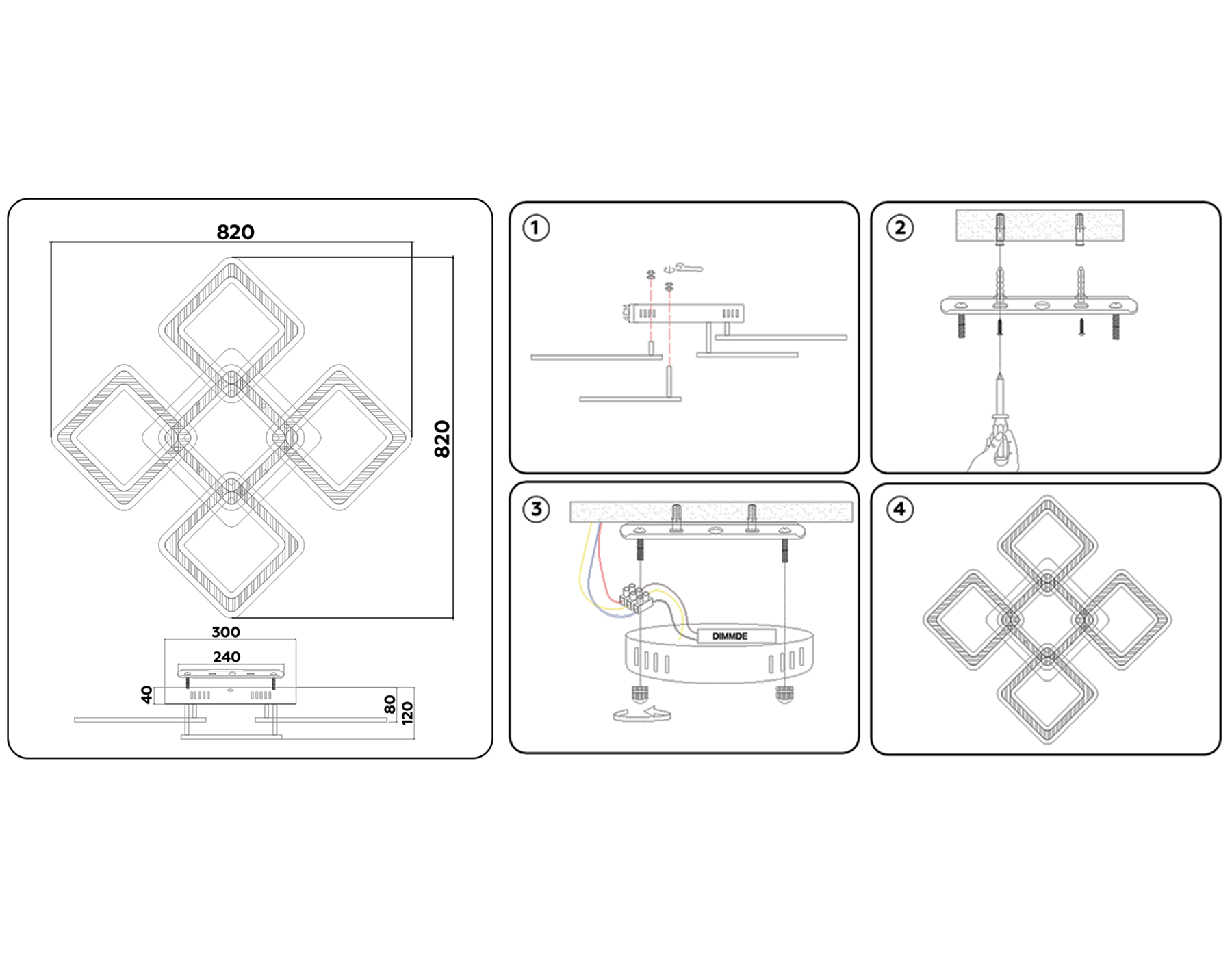 FA866/4+1 WH белый 218W 3000K-6400K 820*820*120 (ПДУ РАДИО 2.4G)