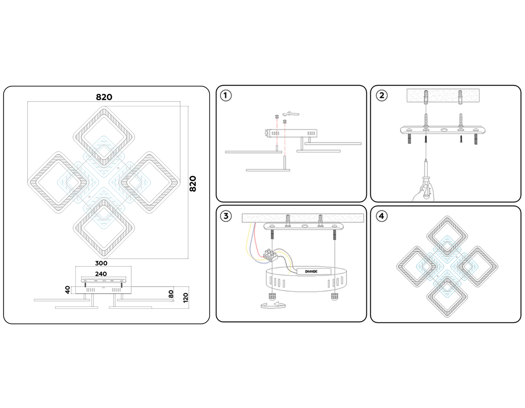 FA868/4+4 WH белый 276W 3000K-6400K 820*820*120 (ПДУ РАДИО 2.4G)