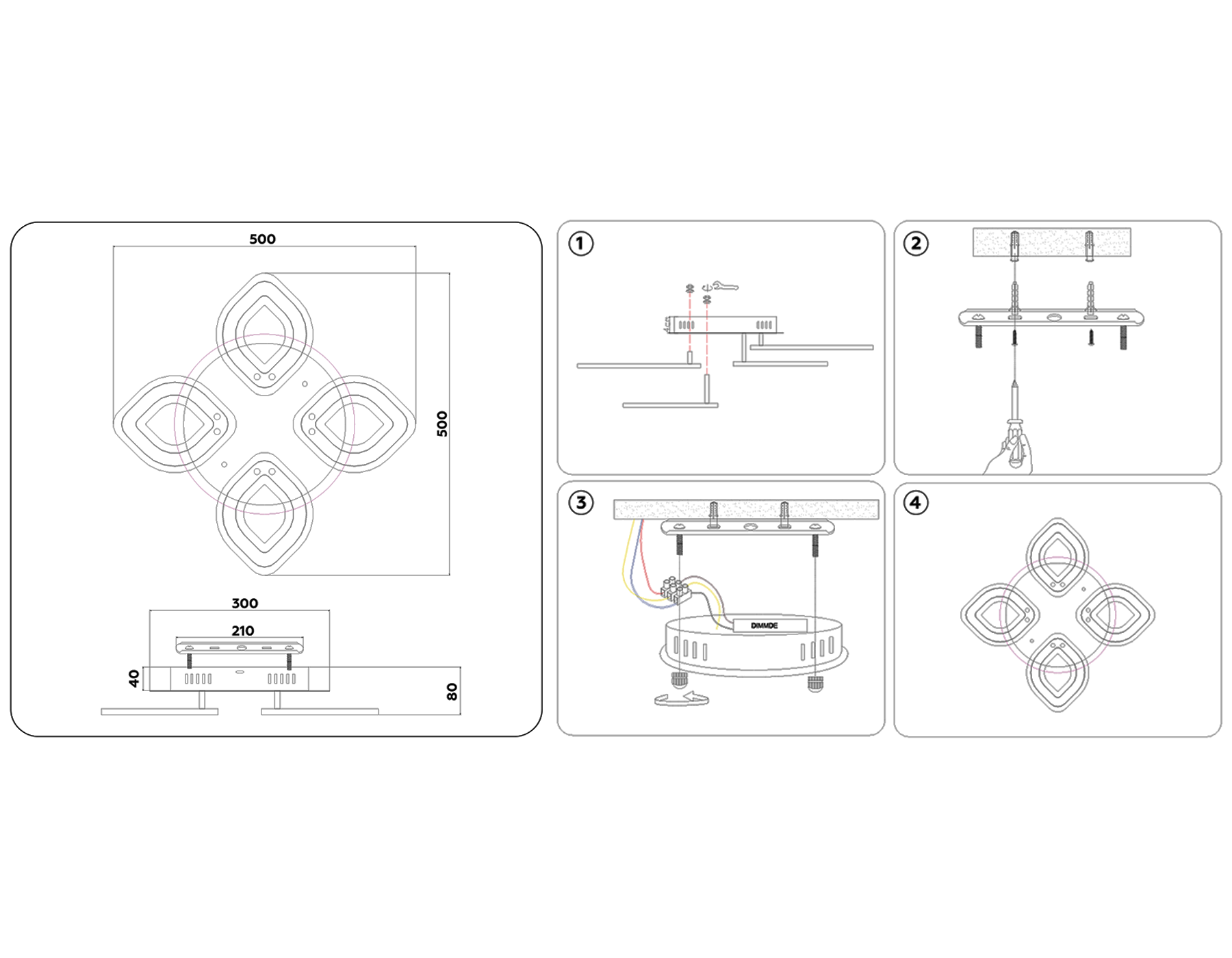 FA8841/4 WH белый 3000K/4200K/6400K 80W 500*500*80 (ПДУ РАДИО 2.4G)